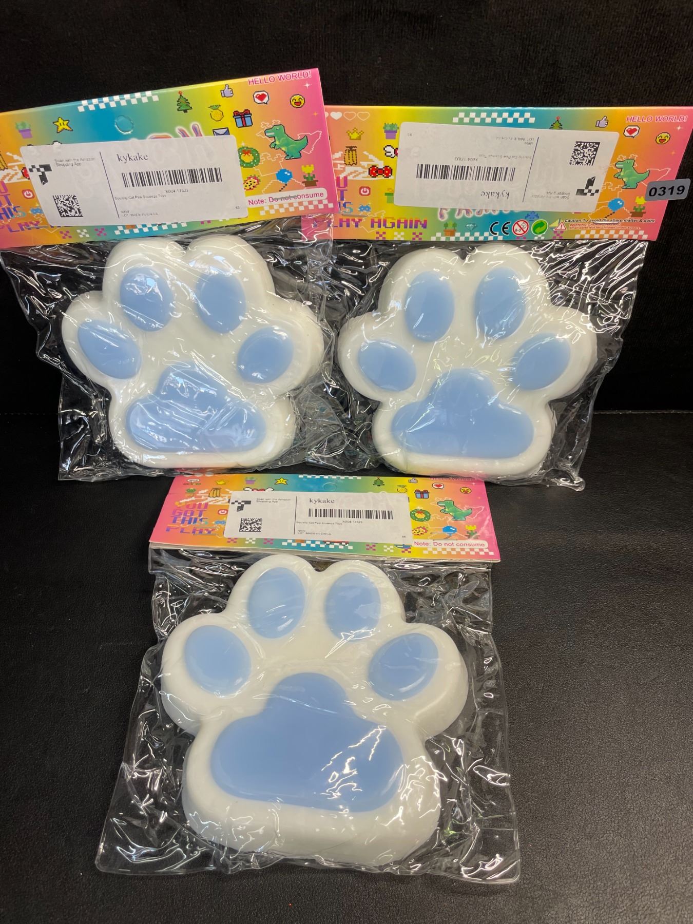 Lot 319 Lot of 3 Large Squishy Cat Paw Squeeze Toys/Sensory Toys - Brand New