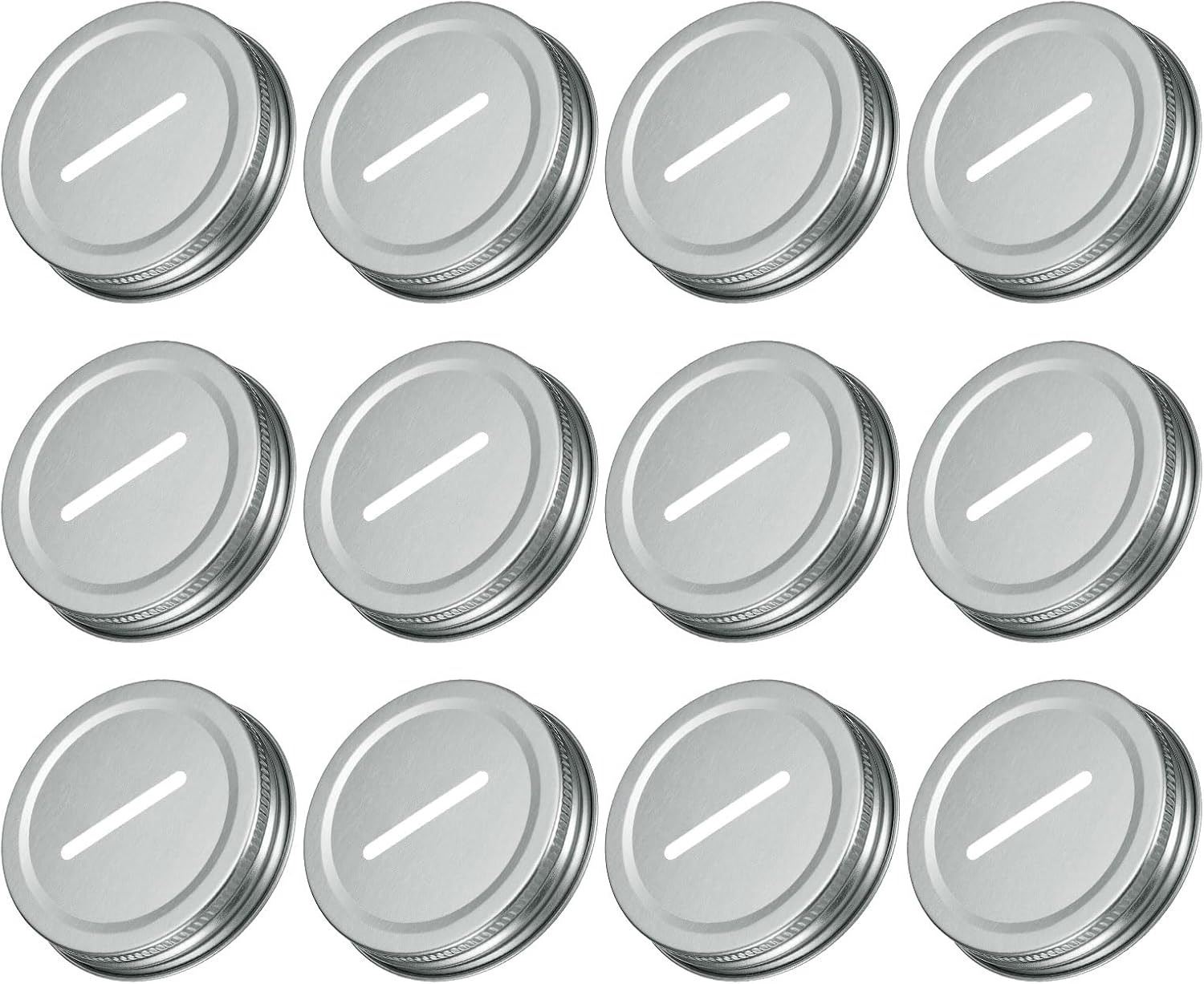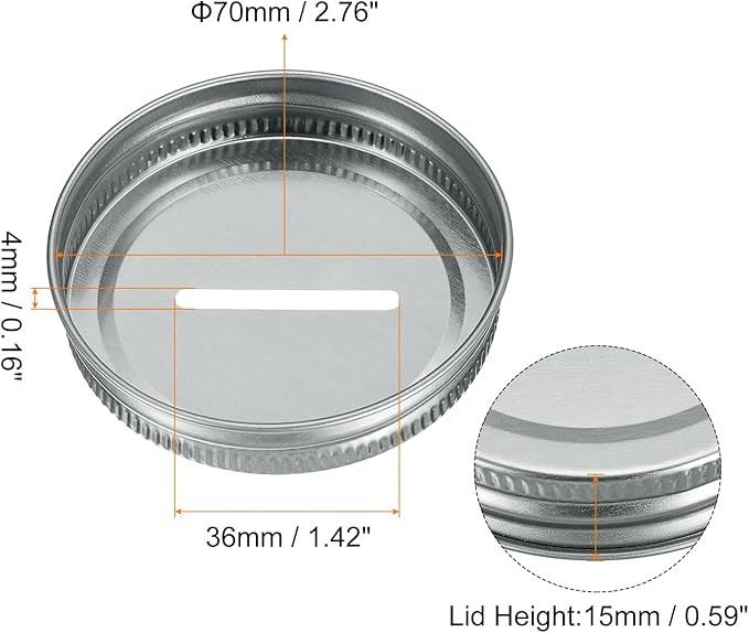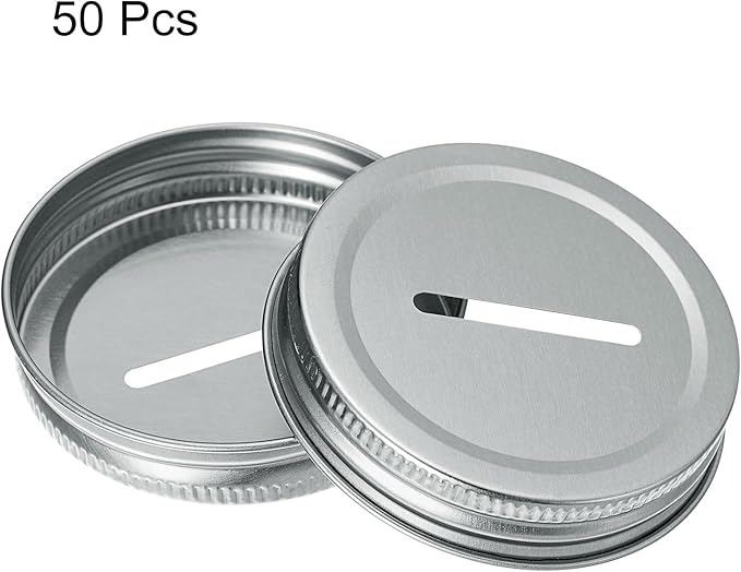- uxcell 50Pcs Coin Slot Bank Lid for Mason Jar, 70mm/2.76" Regular Mouth Tin Plate Caps Inserts for Canning Jars Cover, (Silver Tone)