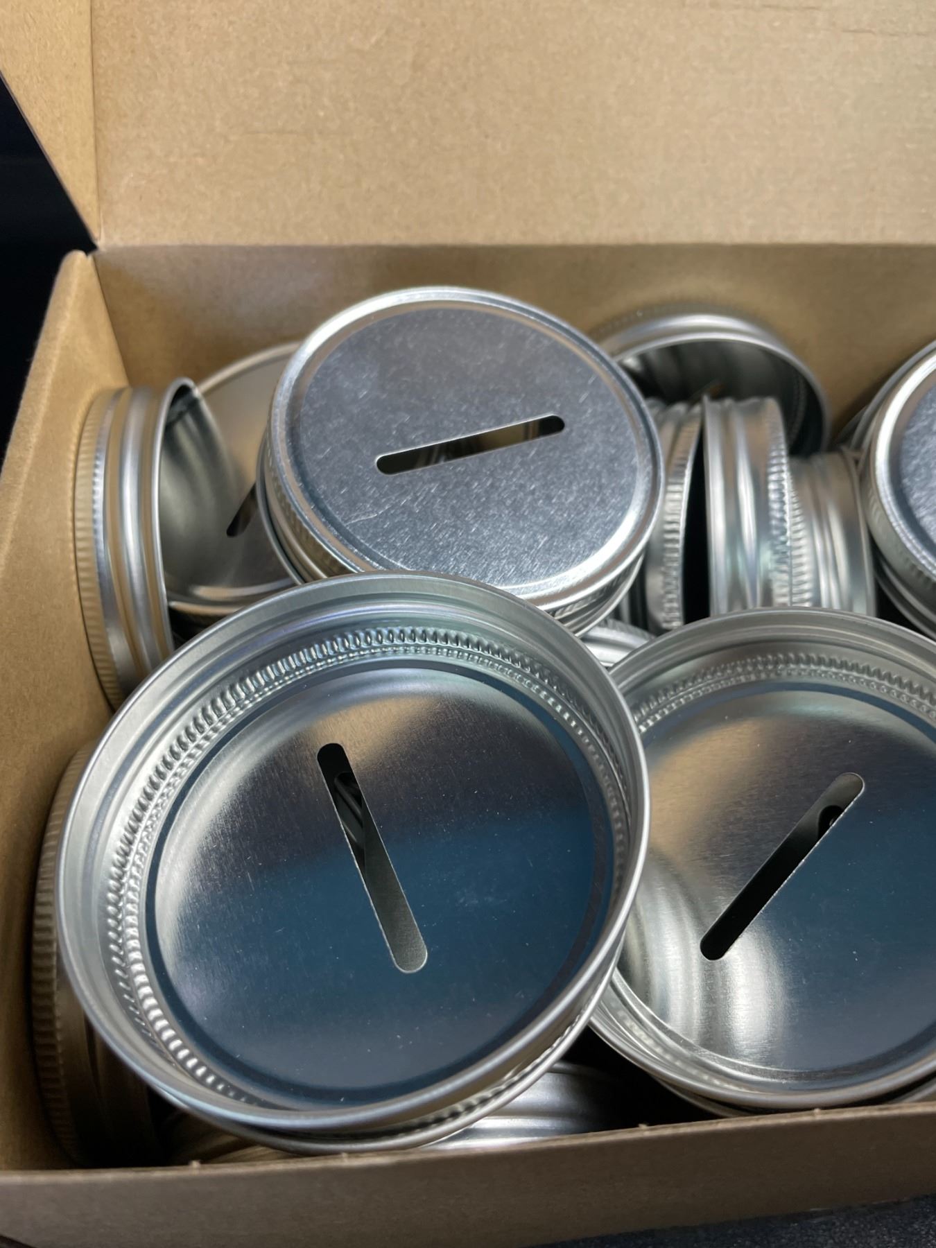 Lot 343 50PCS Coin Slot Lids for Mason Jars (2.76"/70mm) Tin Plate Caps for Canning Jars - New
