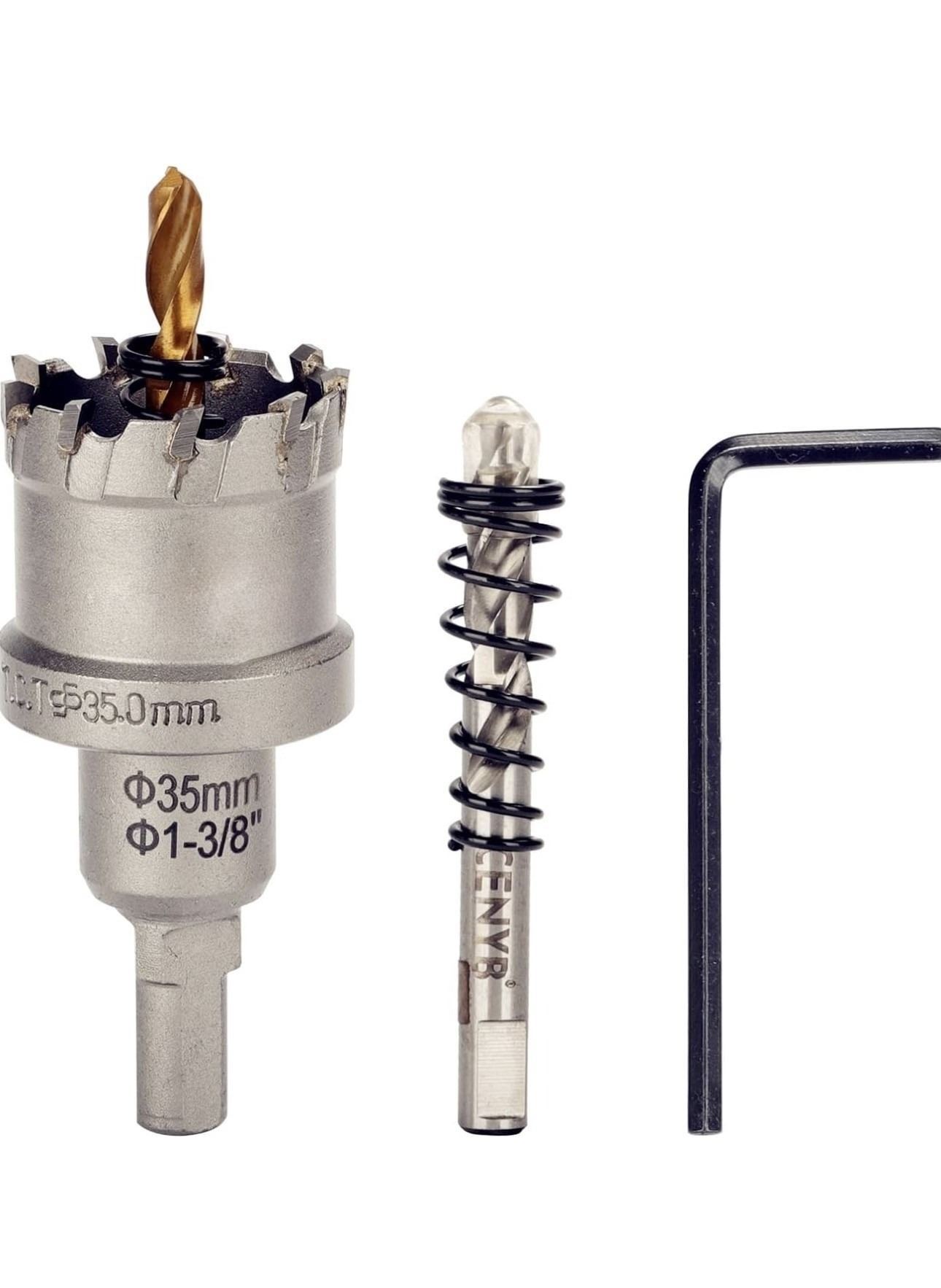 - 1-3/8" tct hole saw set - 35mm tungsten carbide tipped hole cutter with spring-loaded pilot drill bits for metal, stainless steel, iron, plastic and wood heavy duty hole saw