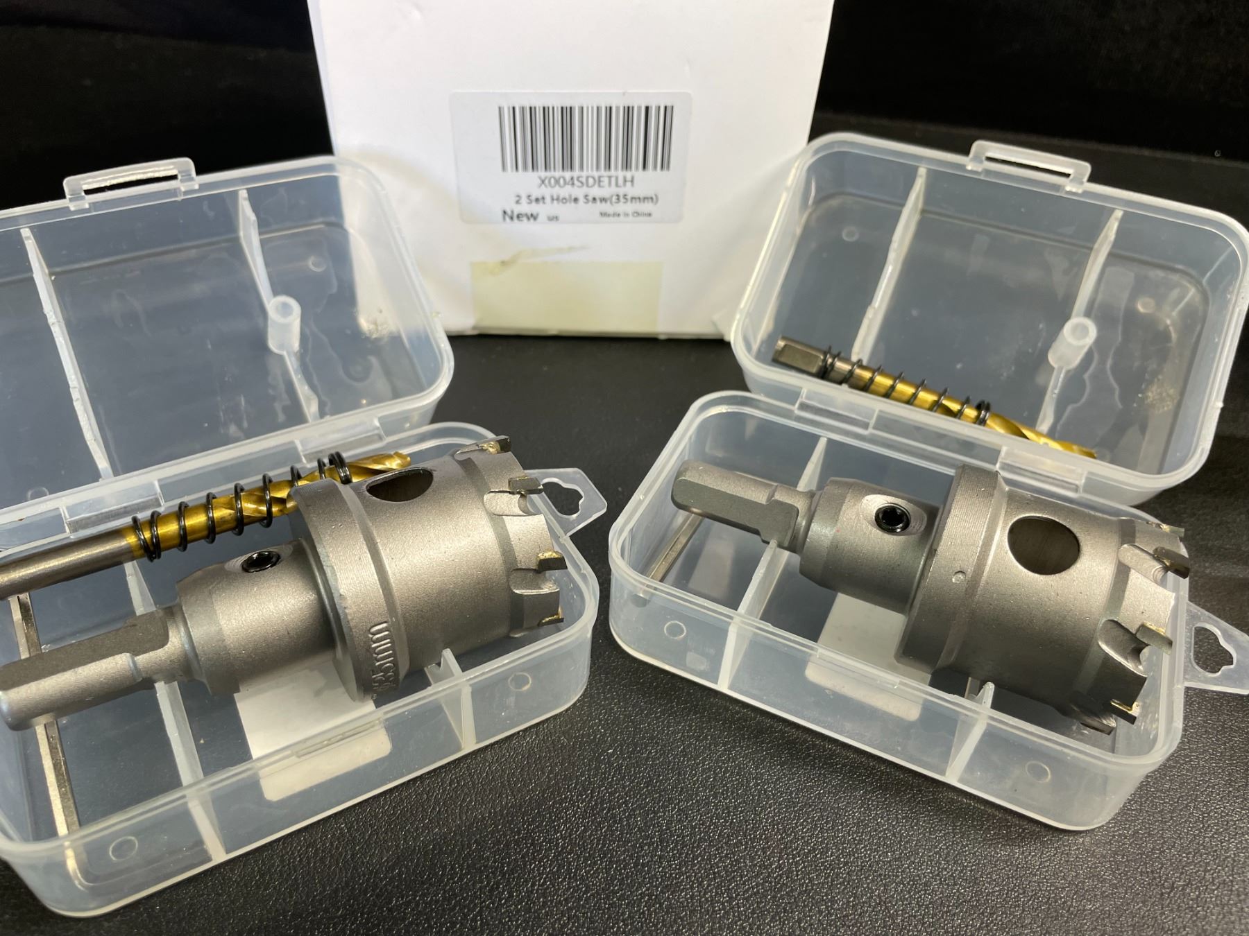 - 1-3/8" tct hole saw set - 35mm tungsten carbide tipped hole cutter with spring-loaded pilot drill bits for metal, stainless steel, iron, plastic and wood heavy duty hole saw
