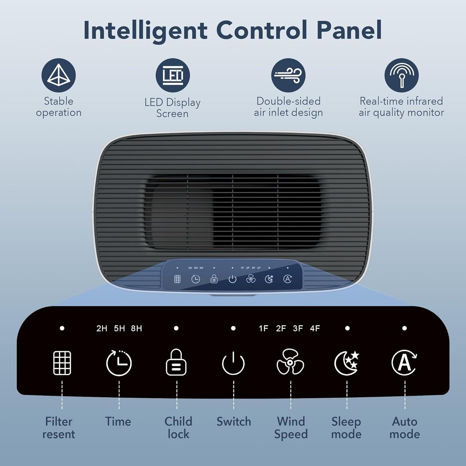 - 3 Timer & 4 Fan Speed: The hepa air purifiers for home for dust has 4 adjustable fan speeds, which are 1F/2F/3F/4F. You can select the Fan Speed according to the air quality.