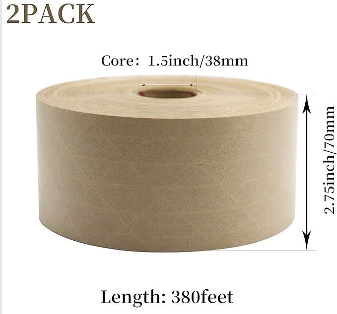 - Reinforced Water Activated Gummed Kraft Paper Tape, 2 Pack 2.75 inch x 380 ft, for Heavy Duty Secure for Packing Shipping etc.