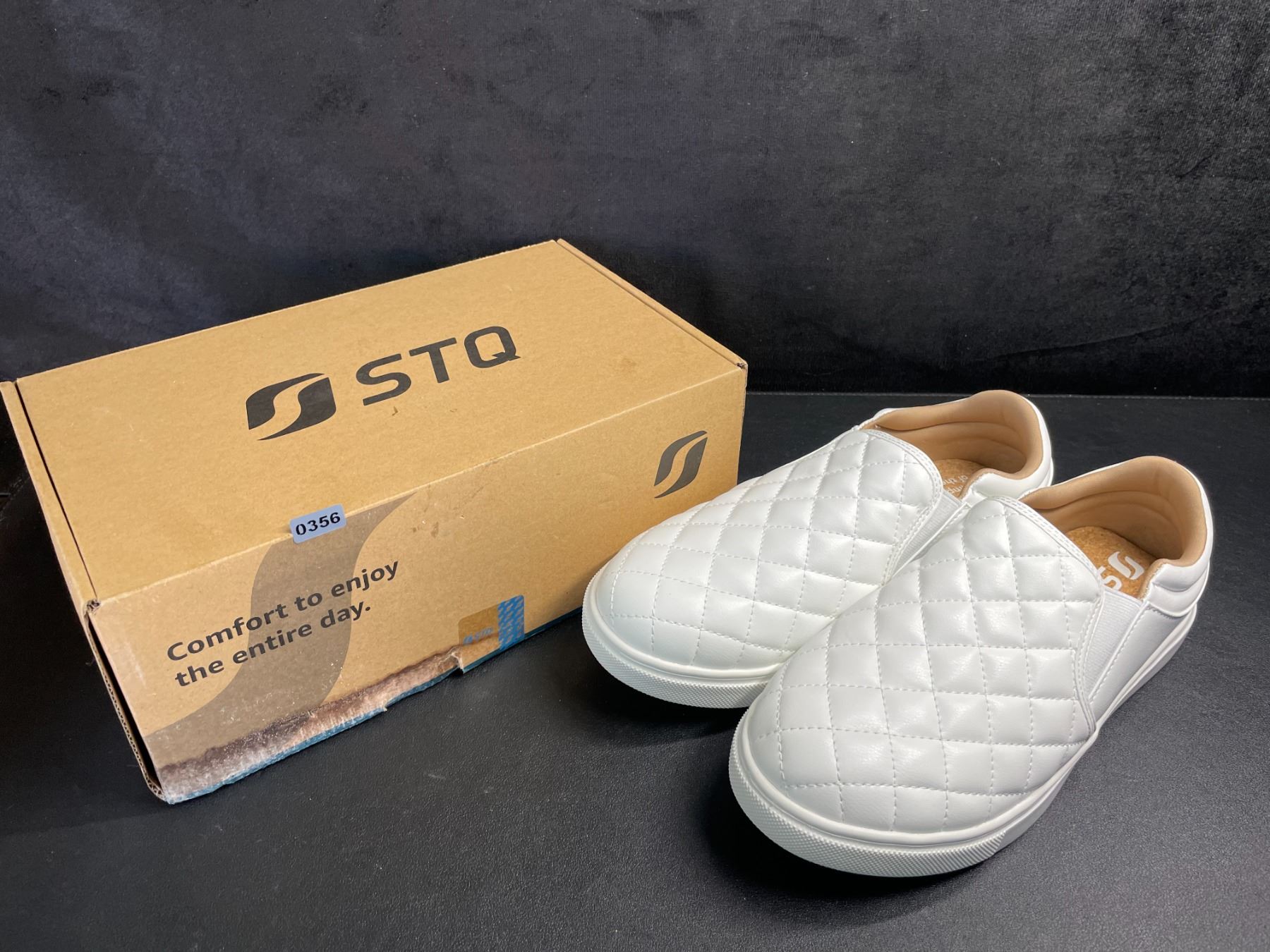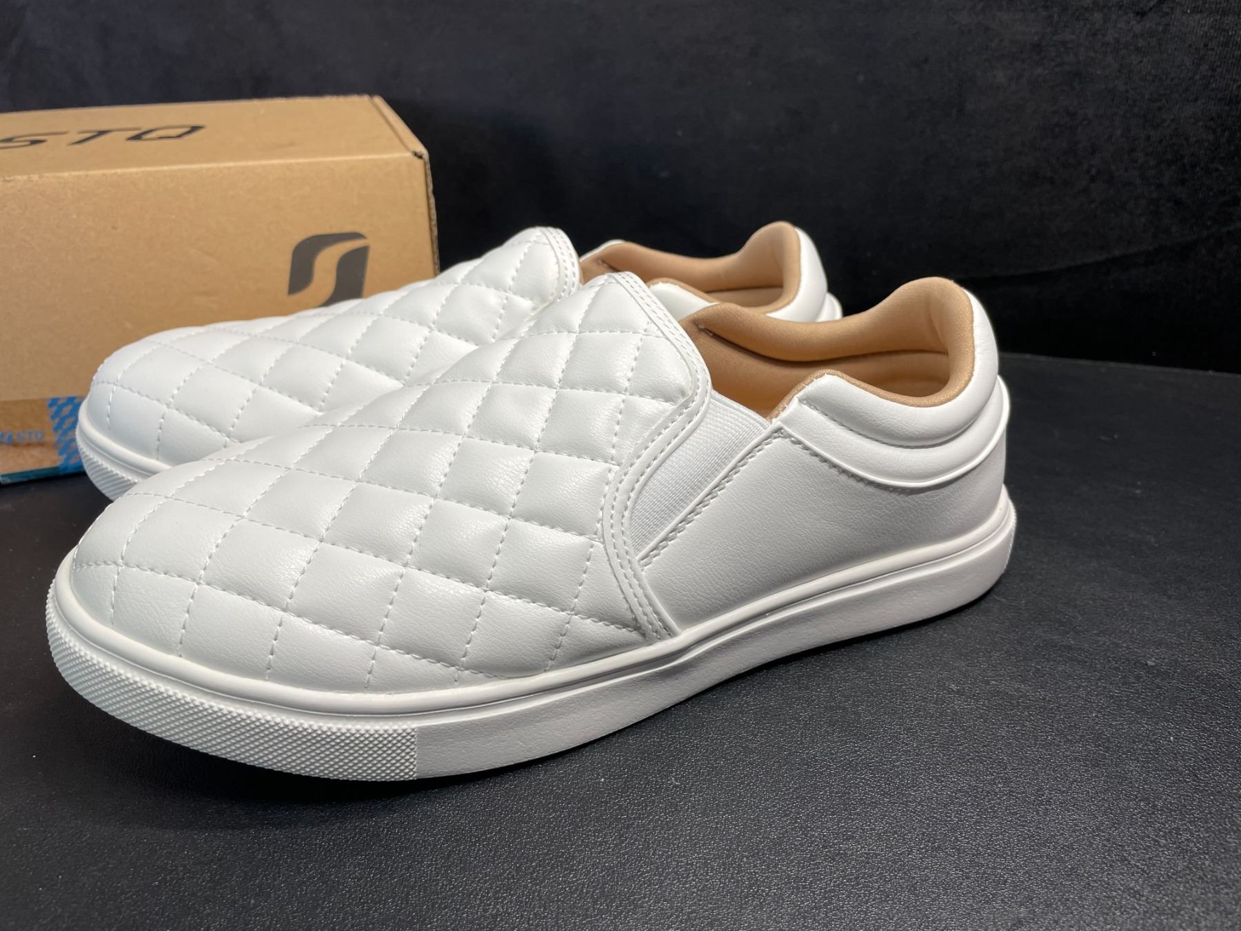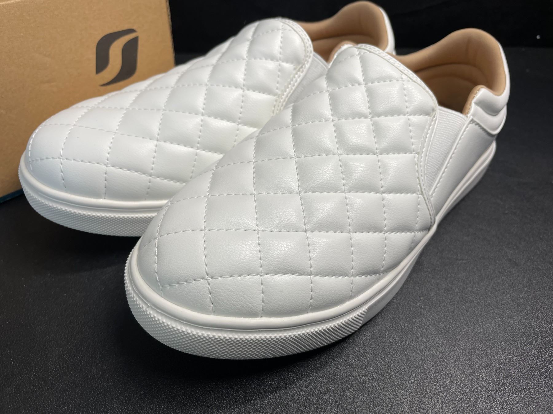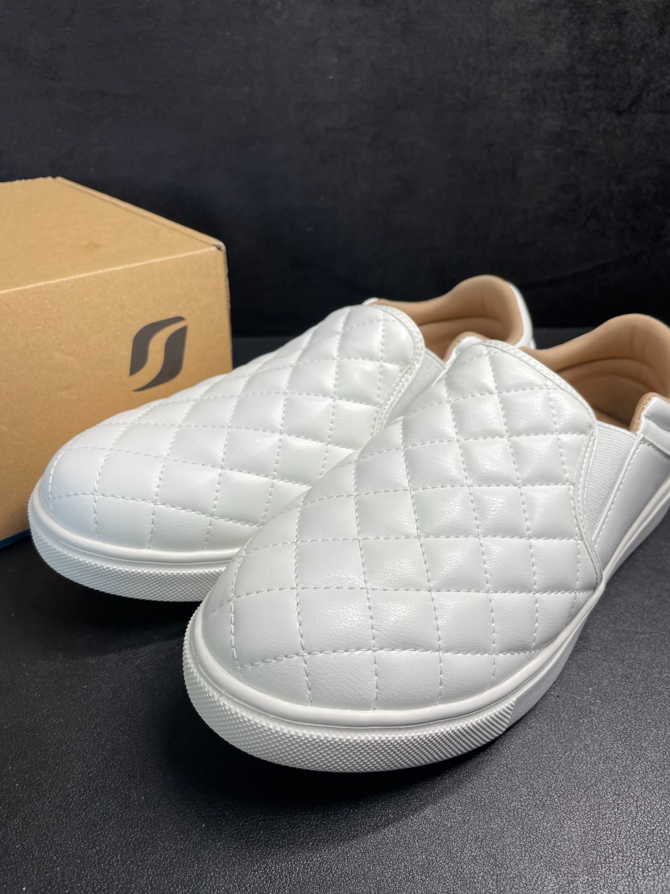 Lot 356 STQ White Slip-On Shoes/Quilted Loafers for Women (Size 8) - New (Damaged Box)