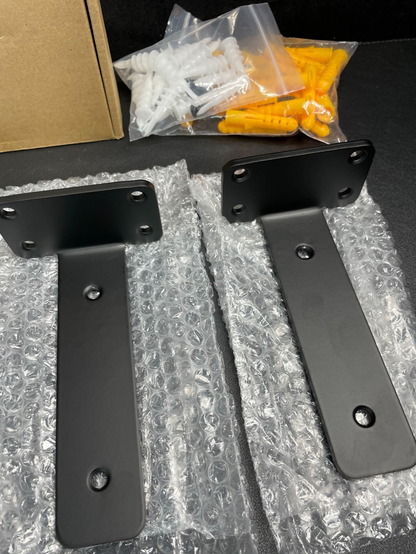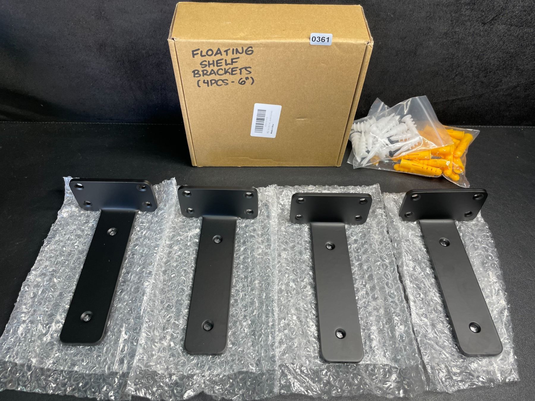 Lot 361 4PCS Heavy-Duty Floating Shelf Brackets; 6" Wall Mounted "L" Shelf Brackets (Black) New in Box