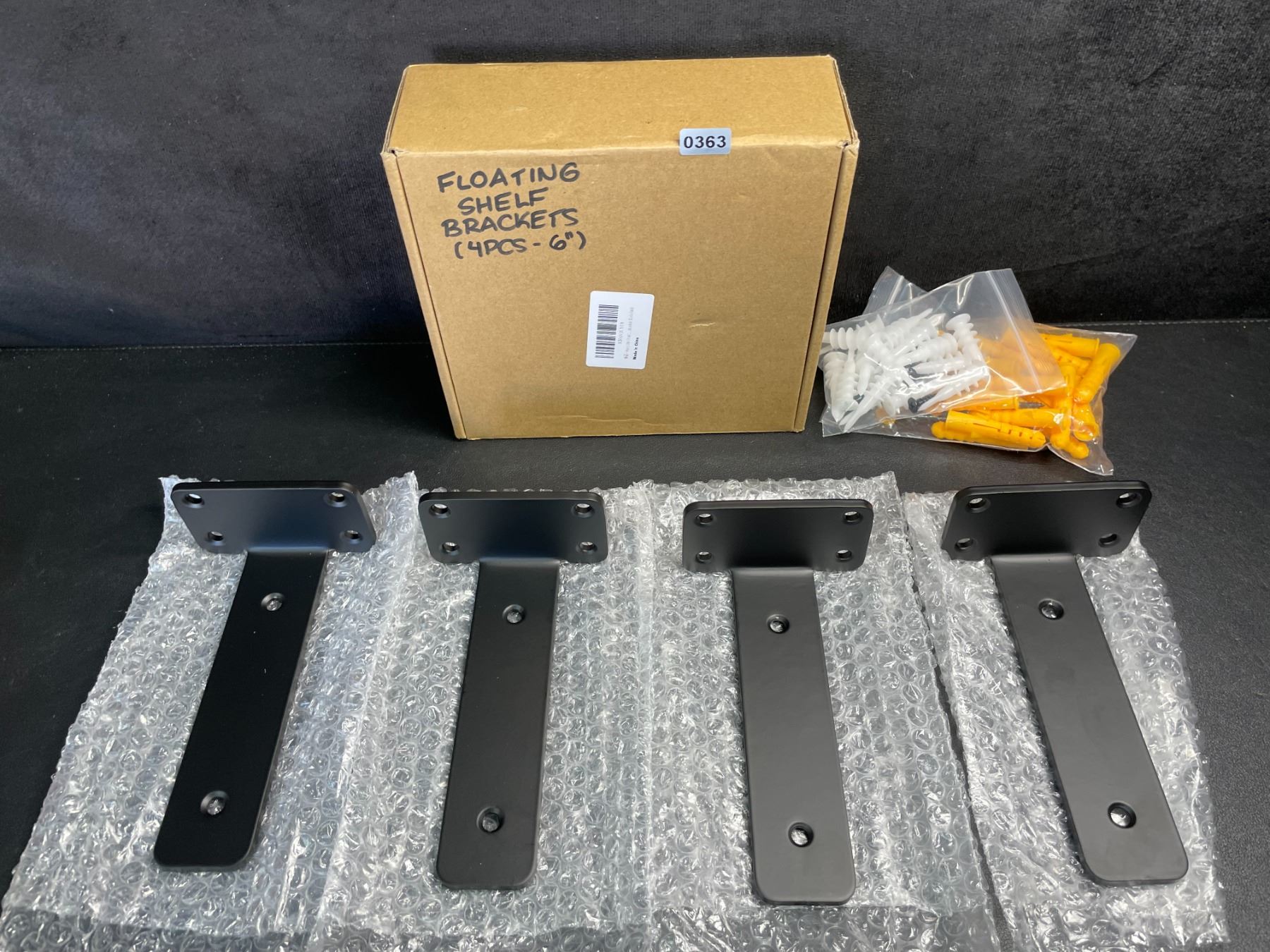 Lot 363 4PCS Heavy-Duty Floating Shelf Brackets; 6" Wall Mounted "L" Shelf Brackets (Black) New in Box