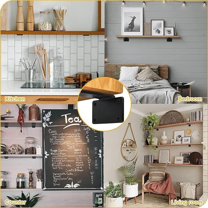 - Floating Shelf Brackets, Heavy Duty Wall Mounted Shelf Brackets, Industrial Hidden L Brackets, (Black) Shelf Supports (4PCS Black - 6inch)