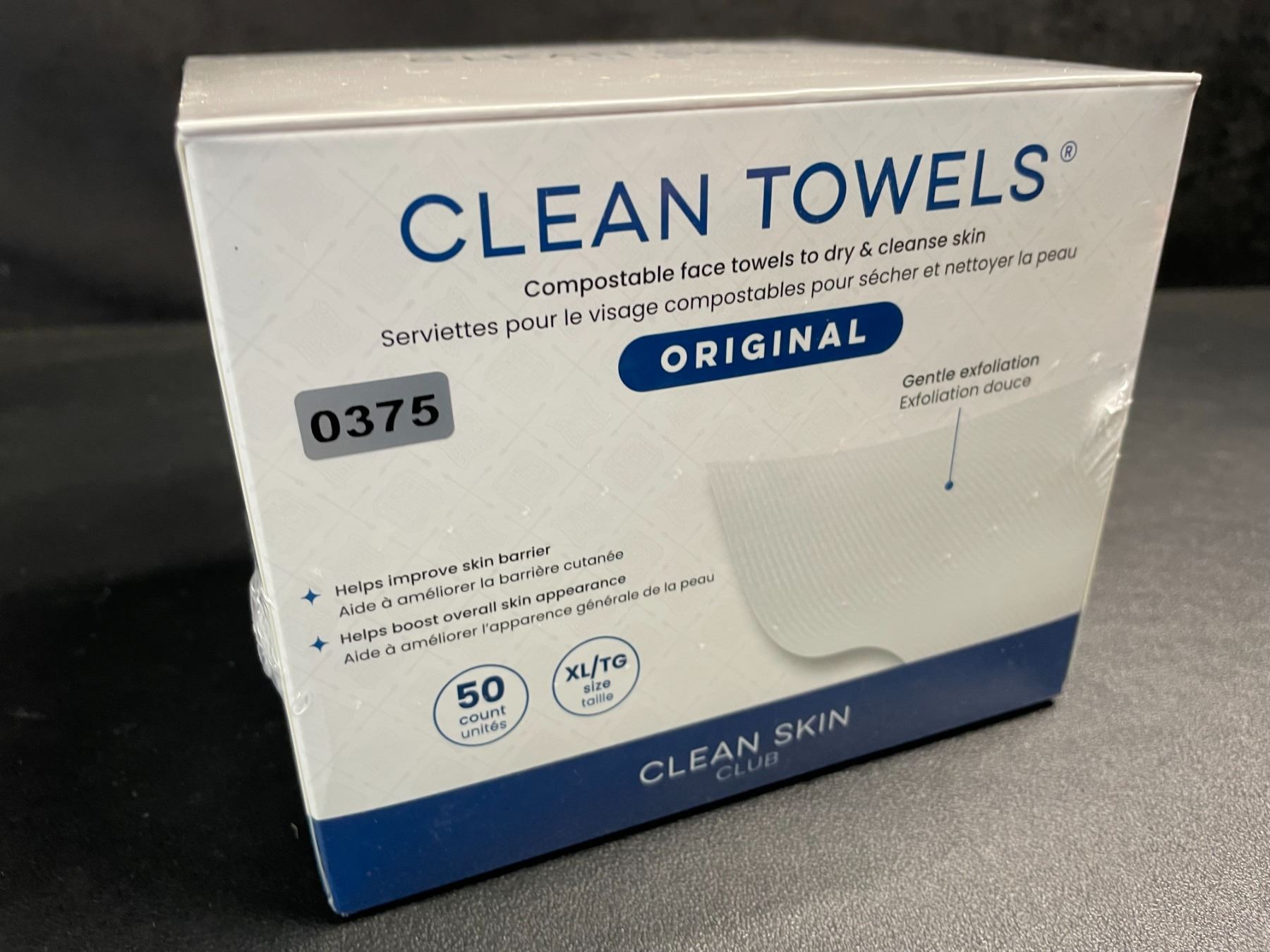 Lot 375 50PC Box of XL Clean Towels; Dermatologist-Approved Compostable Face Towels - Ultra Soft - New