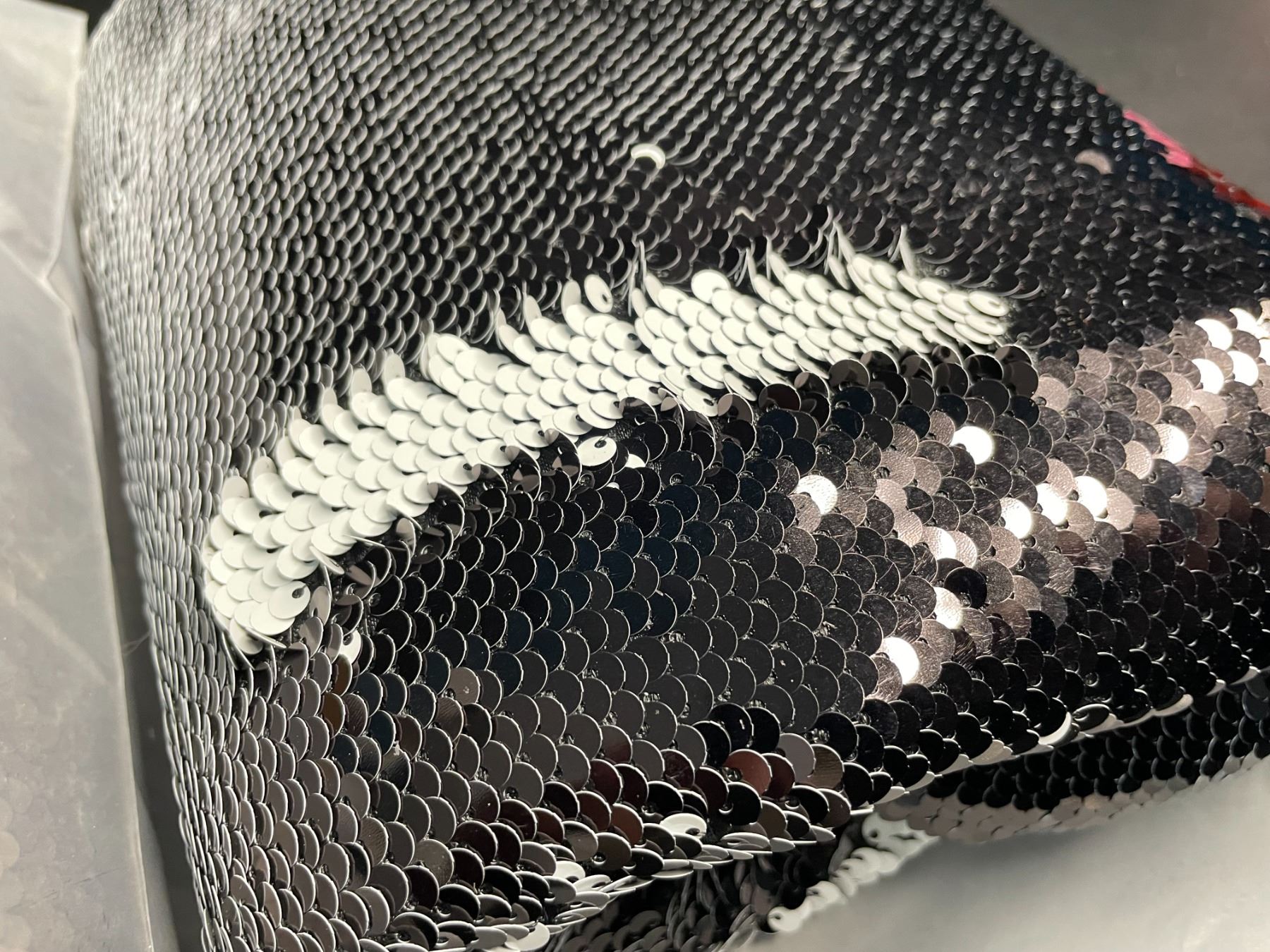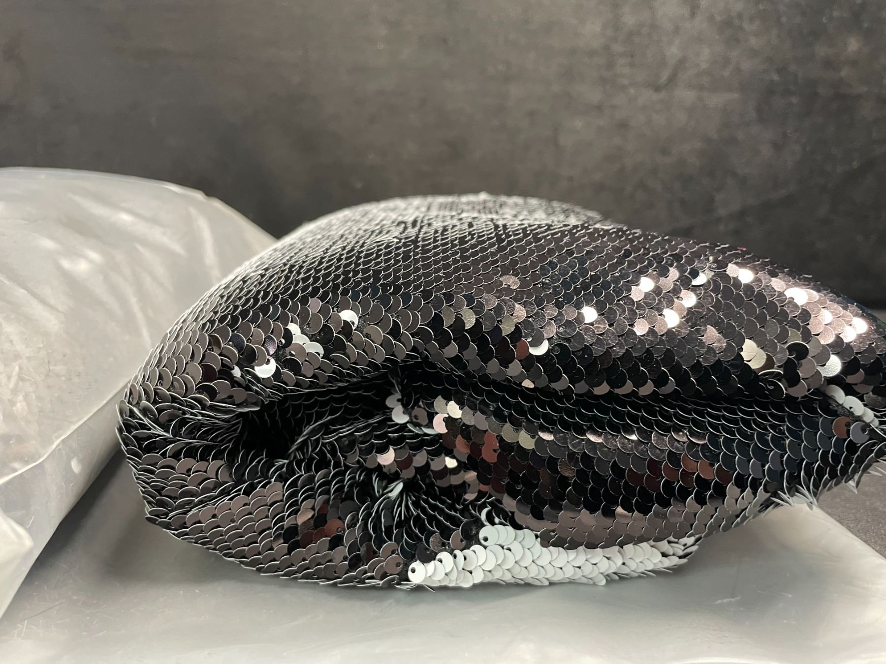 Lot 383 2 Packs of Sensory Wall Sequin Flip Fabric (2 Yards Each) Black/White Reversible Glitter Fabric; New