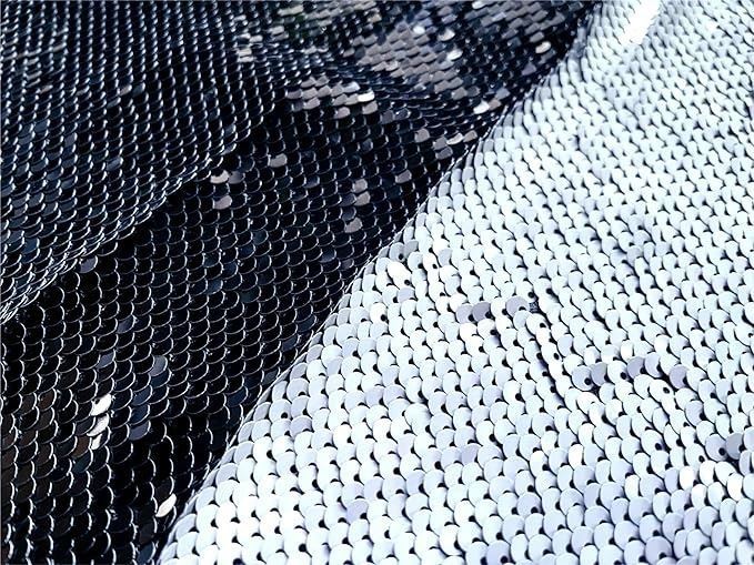 - Sensory Wall Sequin Flip Fabric for Kids,0.2" Large Sequins Sensory Graffiti Fabric for Toddlers,Tactile Stimulation,Reversible Glitter Fabric (2 yd, Black + White)
