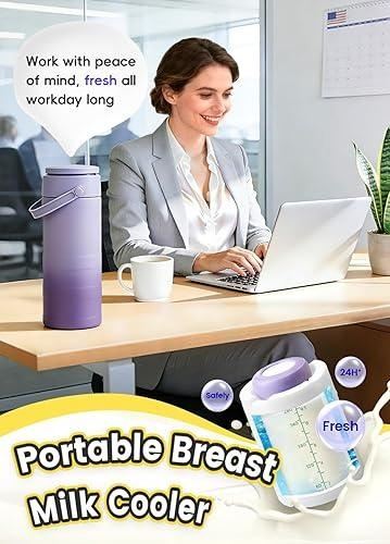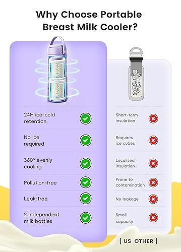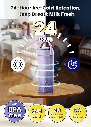 - Portable Milk/Breast Milk Cooler, 24 Hours 360° Cooling Breastmilk Cooler Bottle for Outdoor/Travel/Work, 19oz Larger Capacity Travel Breastmilk Chiller with 2 Storage Bottles, Great Gift for New Moms