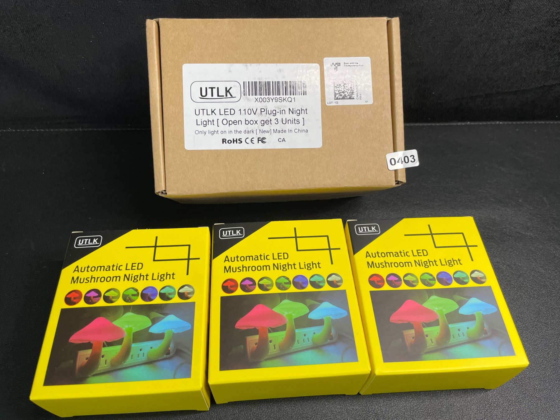 Lot 403 3-Pack LED Color-Changing Mushroom Plug-In Night Lights w/ Dusk to Dawn Sensor; 7-Colors - New