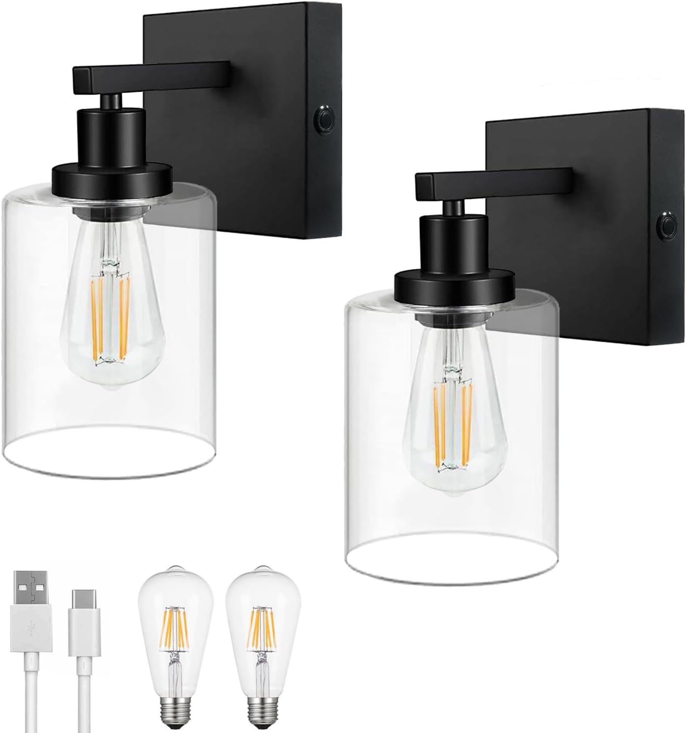 Lot 425 GLOBE 2 WALL SCONCE LIGHTS BATTERY RECHARGEABLE GLOBE WITH BLACK BASE (SLIGHTLY USED)