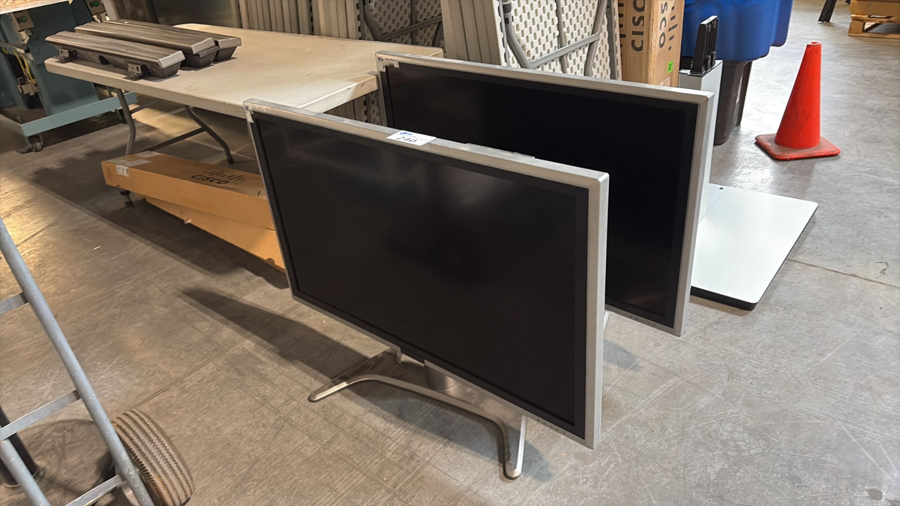 Lot 240 2 SHARP AQUOS 42" TV'S, 3 SOUNDBARS AND 3 MISC TV STANDS