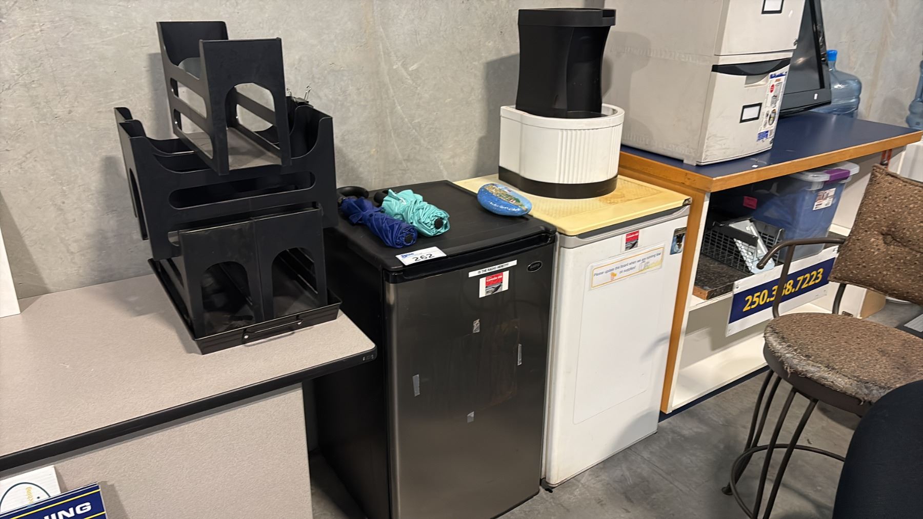 Lot 262 2 SMALL BAR FRIDGES, VACUUM, 2 FANS, COUNTERS, TOSHIBA 27"TV AND MISC