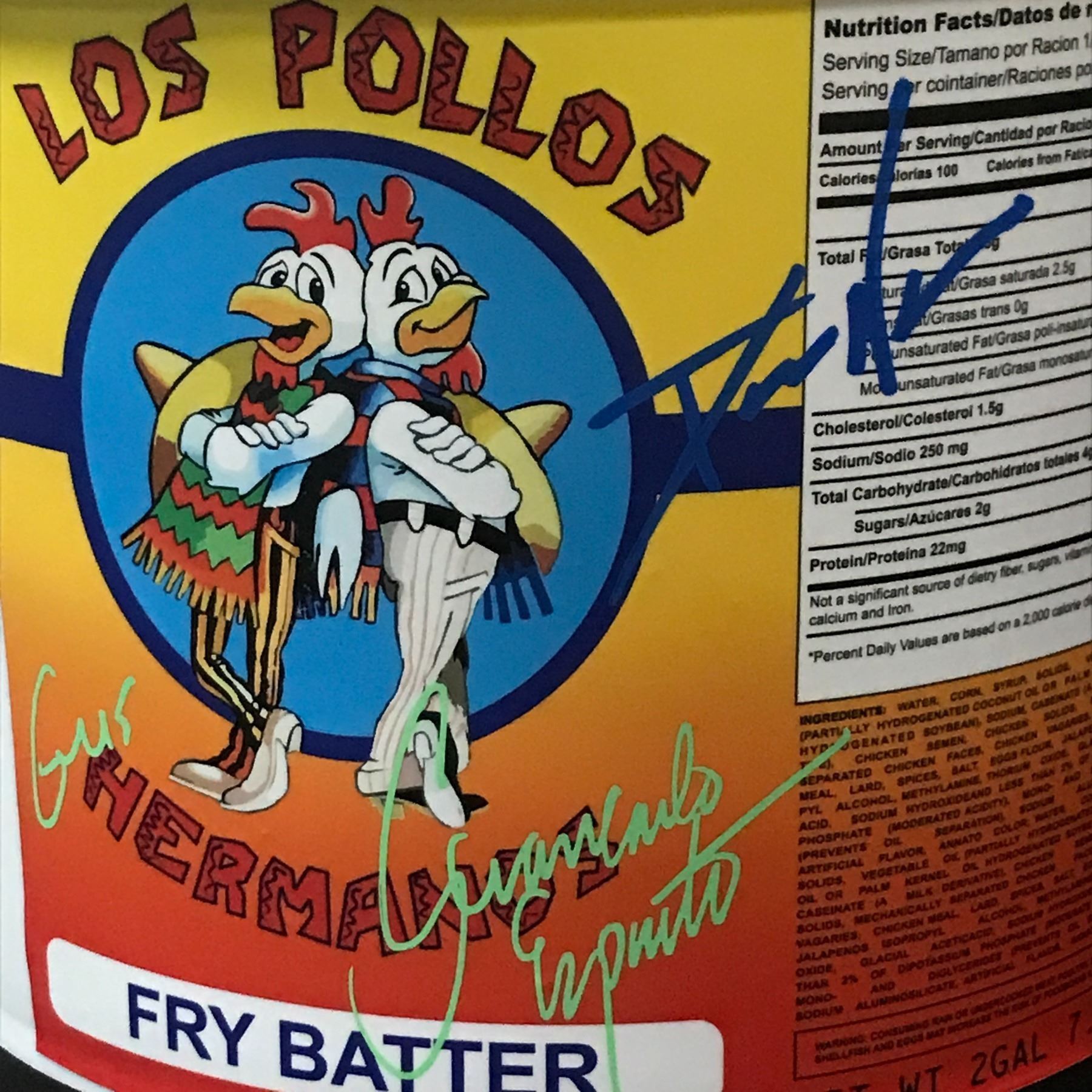 Lot 619 GIANCARLO ESPOSITO AND DEAN NORRIS SIGNED LOS POLLOS HERMANOS SIGNED CHICKEN BUCKET - WWOC COA