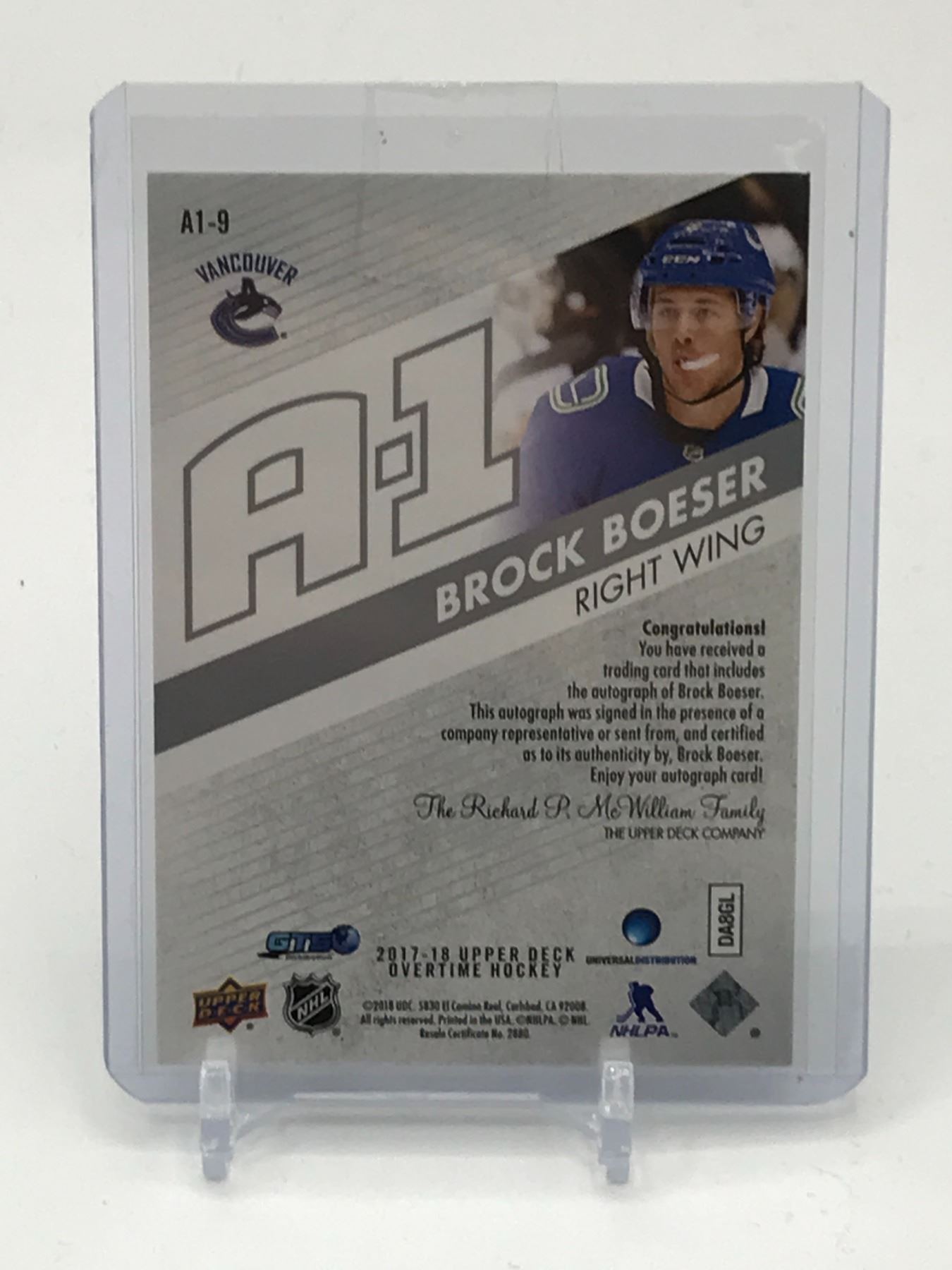 Lot 654 2017-18 UPPER DECK OVERTIME HOCKEY BROCK BOESER SIGNED TRADING CARD