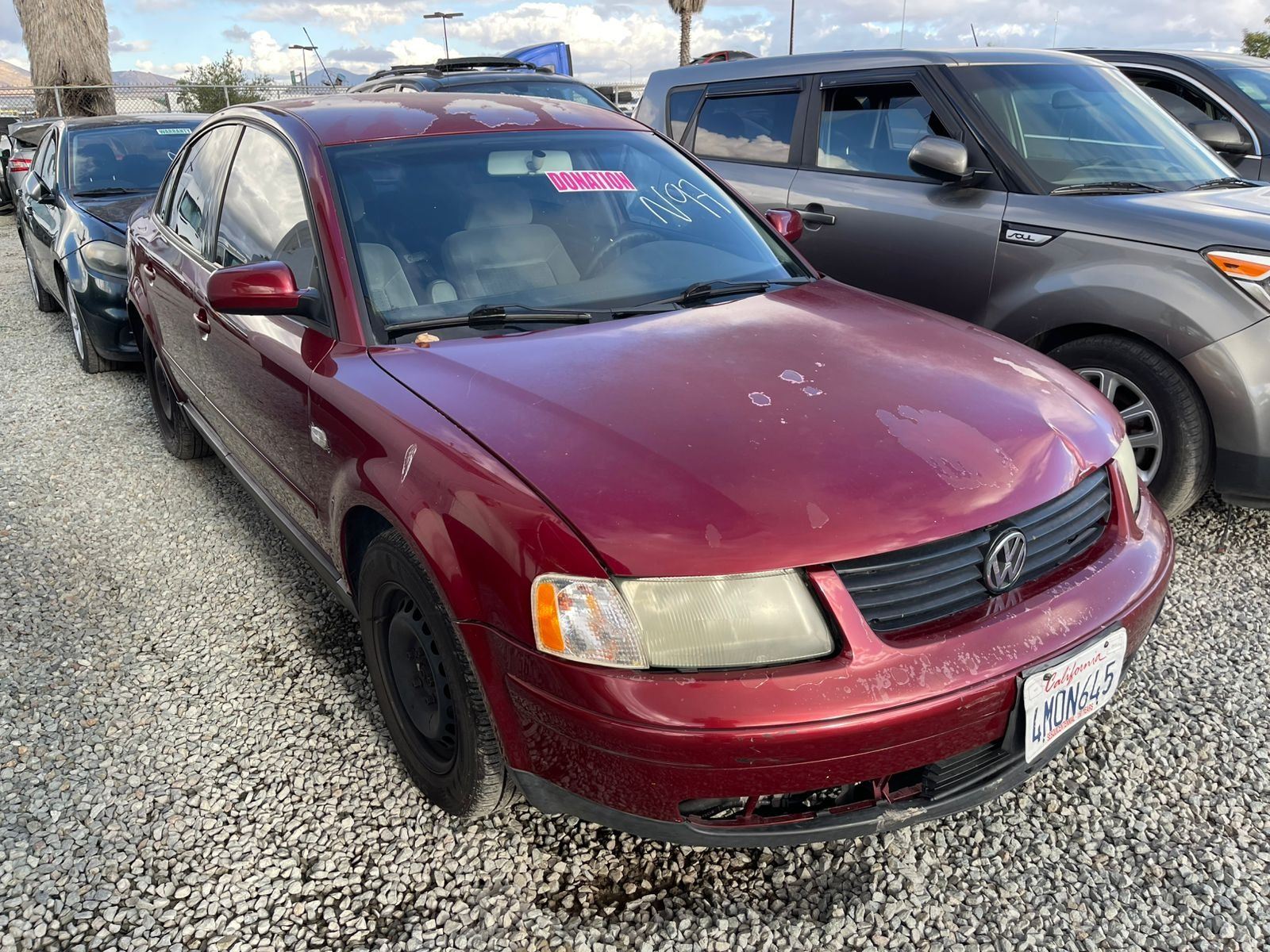 MAKE: VOLKSWAGEN || MODEL: PASSAT || YEAR: 2000 || TITLE: T-DONATION || VIN: WVWMA23B8YP294290 || MILES: || ENGINE: 4 CYL / 1.8 L || COLOR: BURGUNDY || KEYS: Yes