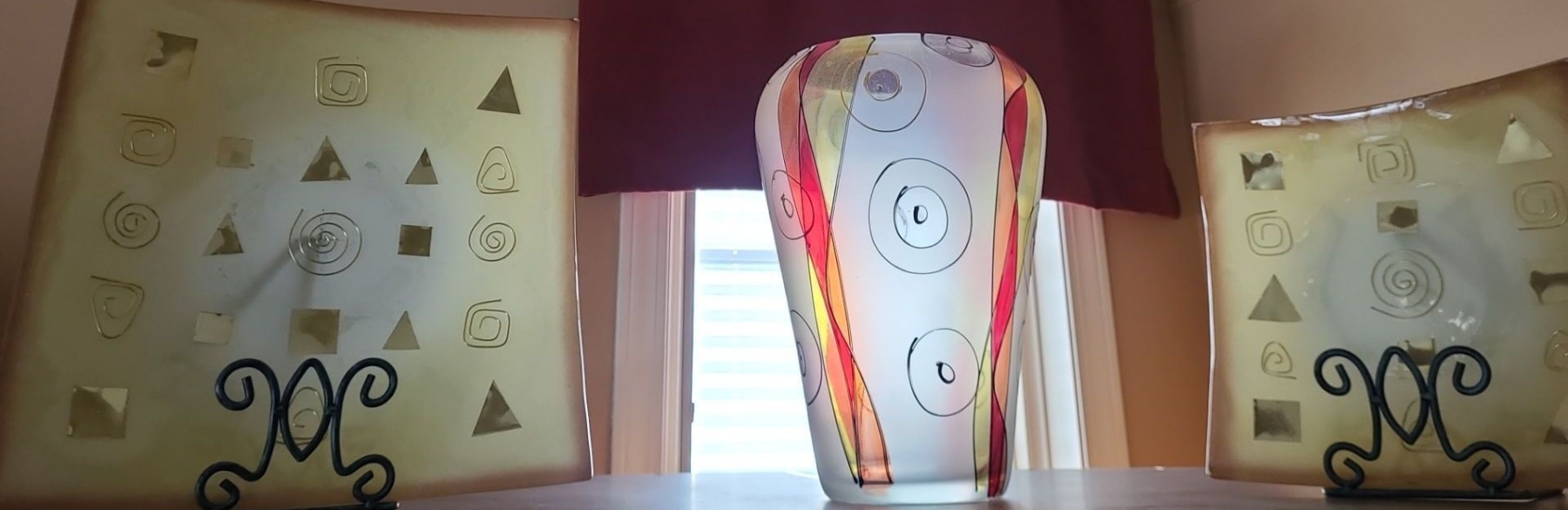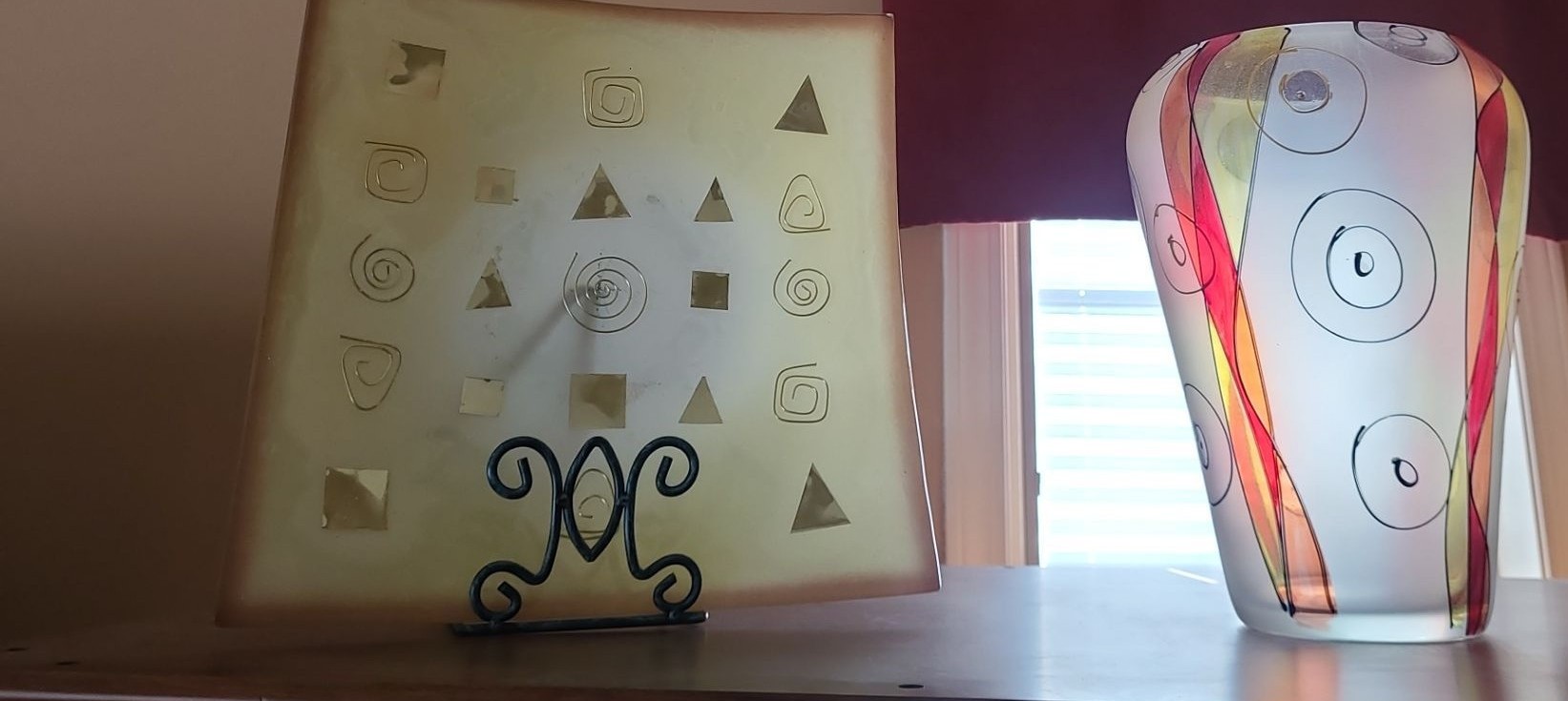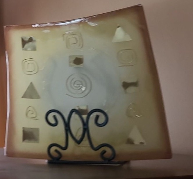 Lot 149 Beautiful Decorarive Italian Glass Plates w Holders and Vase. Lg Plate 13 1/2 w 13 1/2 h