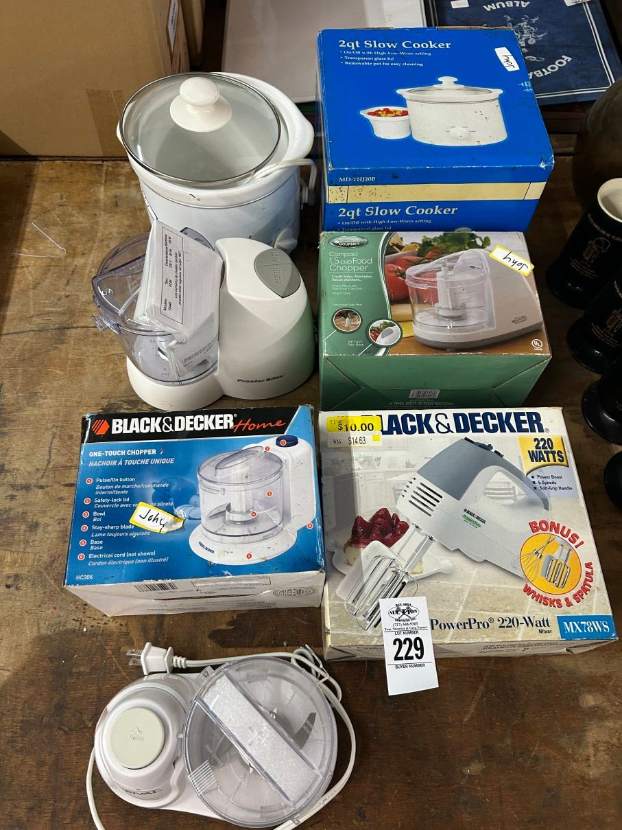 Lot 229 Asst. Appliances Food Processor, Crockpots, Blender