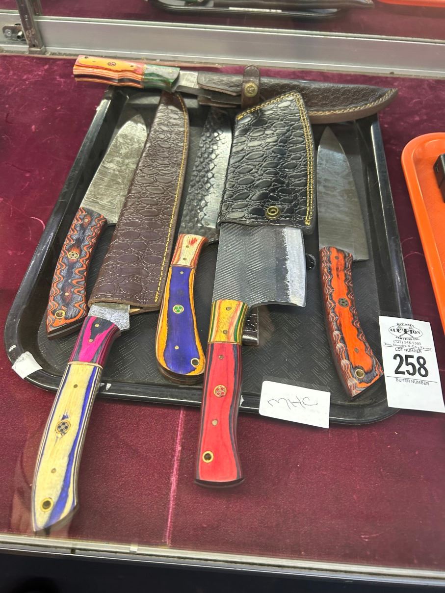 Lot 258 6-Custom Large Knife Some w/Sheaths - 6 X $