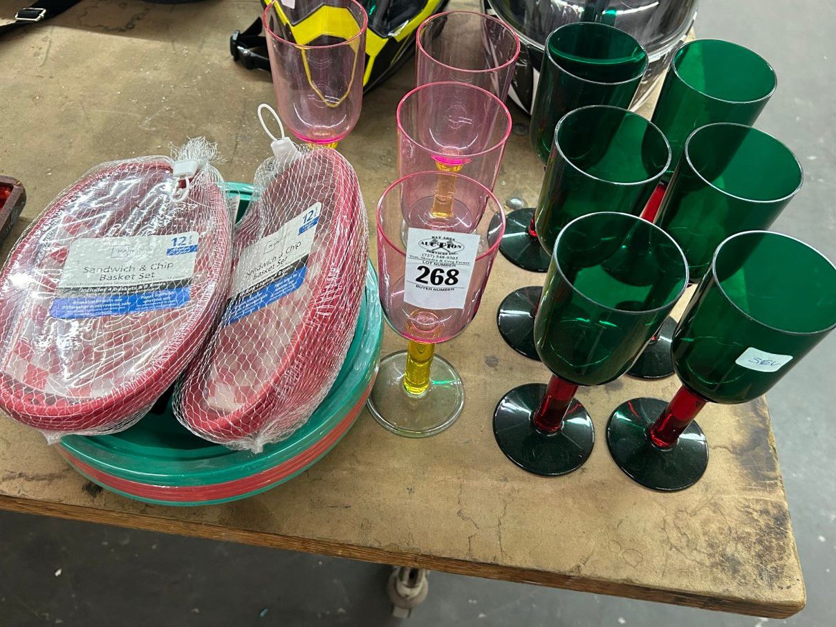 Lot 268 Plastic Patio Stems, Sandwich Baskets, Dishes