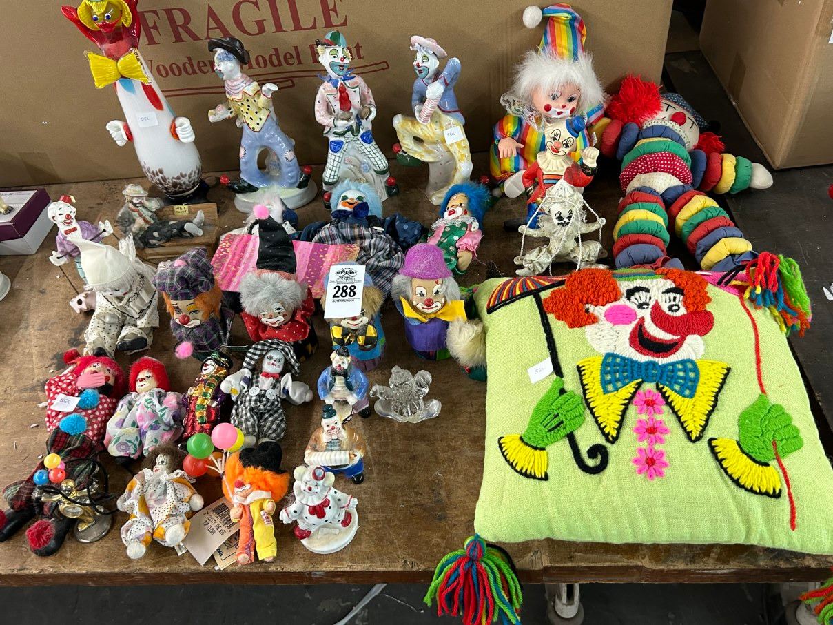 Lot 288 Clown Collection w/Art Glass