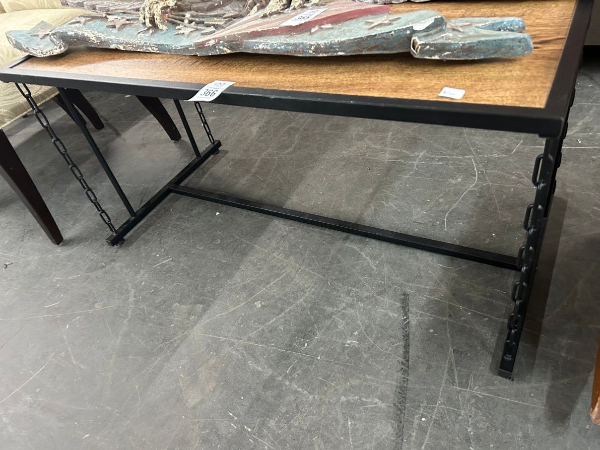 Lot 366 Oak Style Black Metal w/Chain Ends Coffee Table