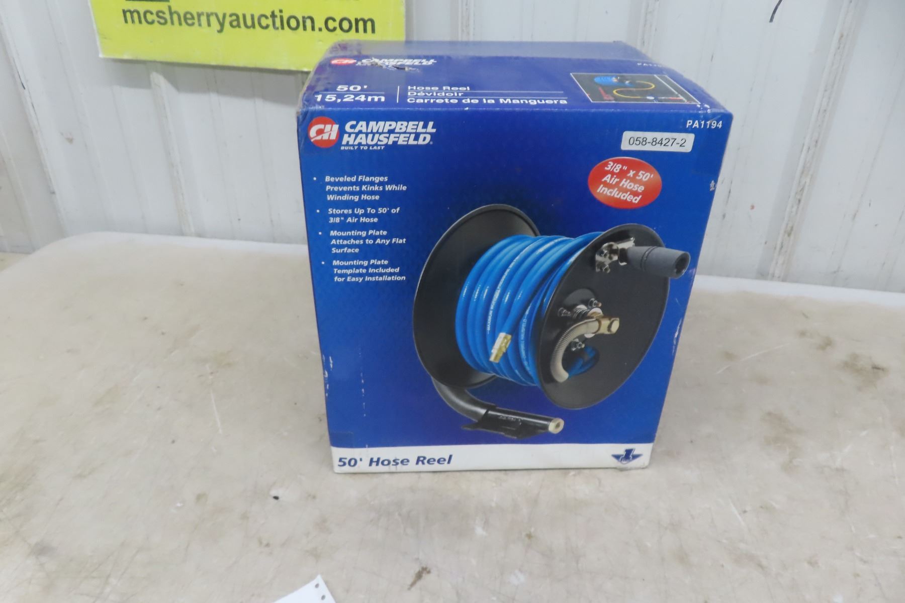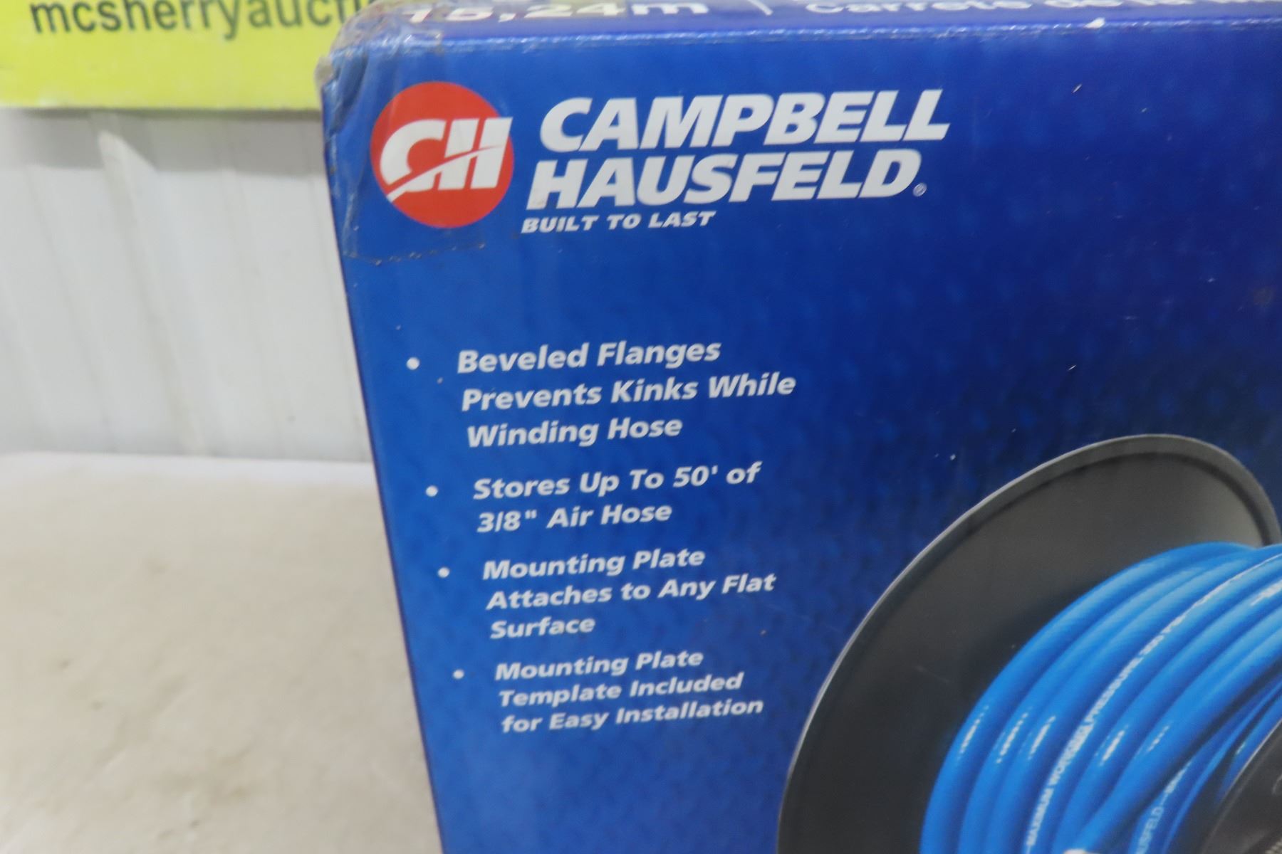 Lot 96 New Campbell Hausfeld Air Hose and Reel 50ft x 3/8''