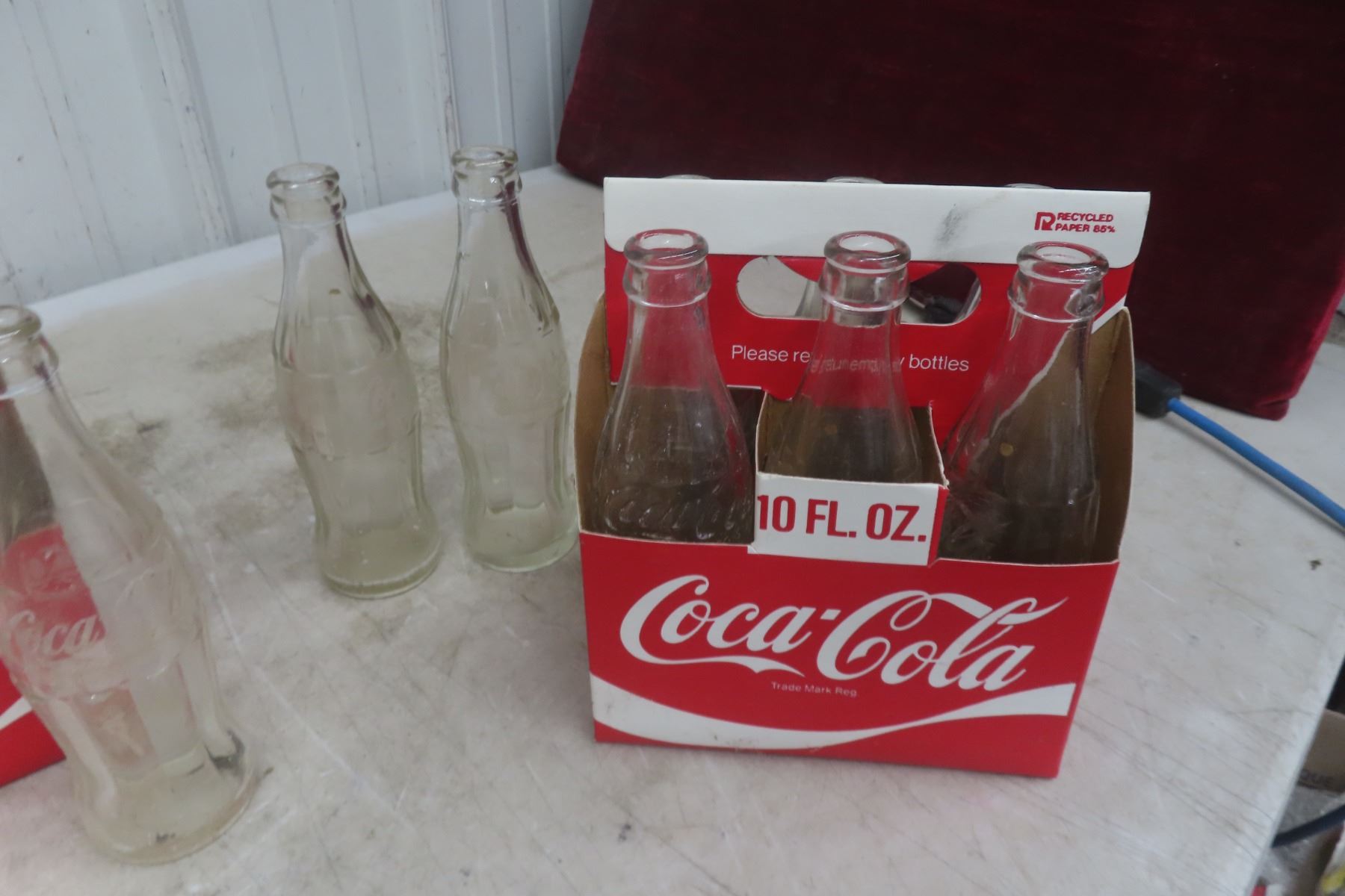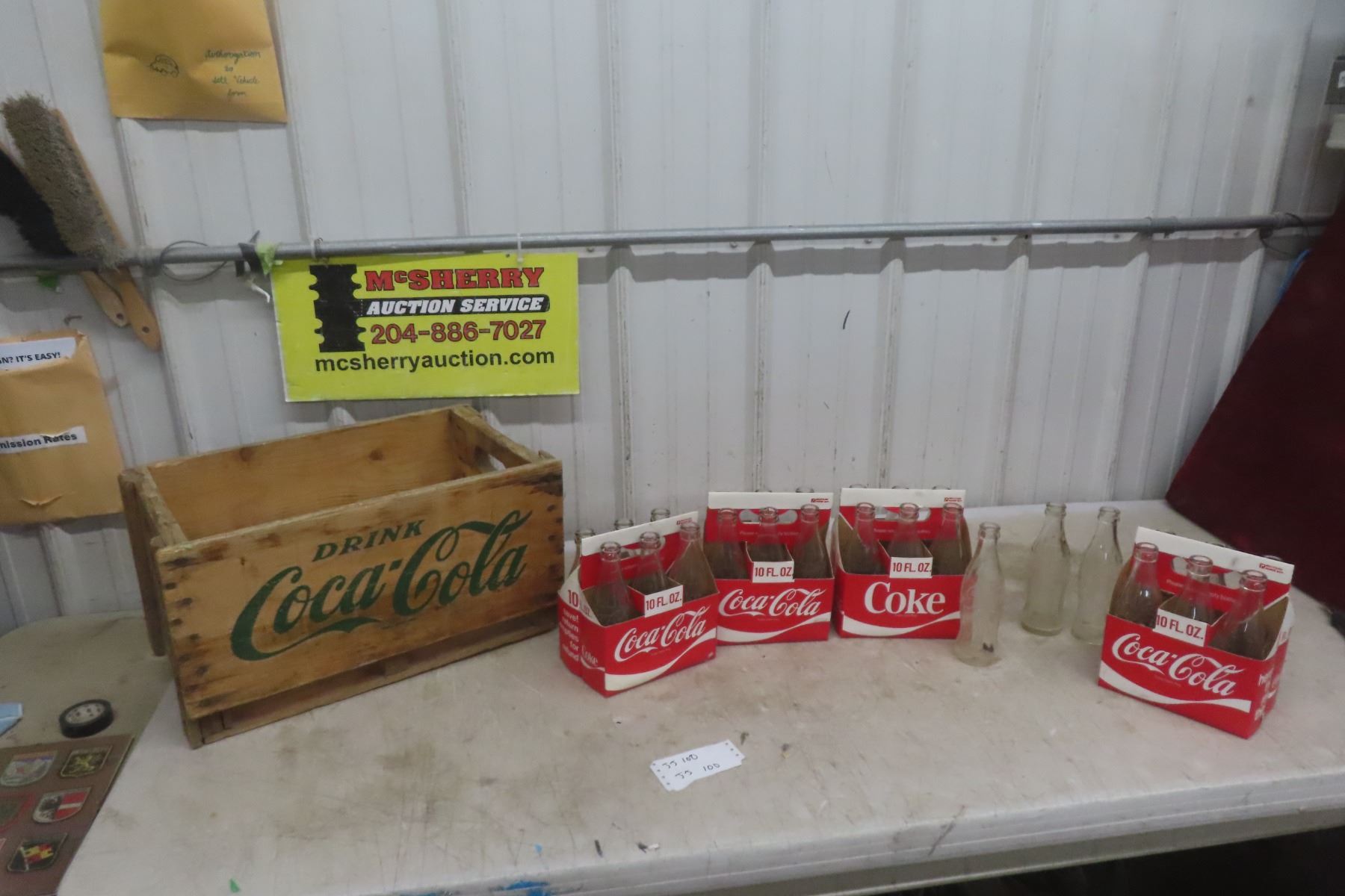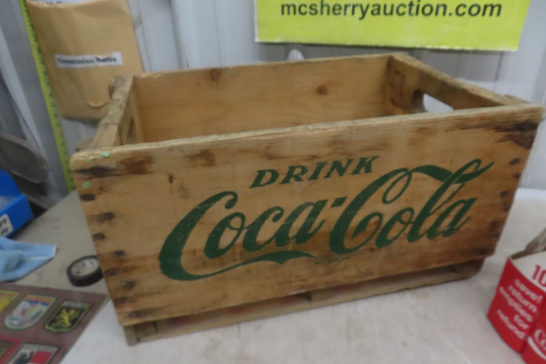 Lot 100 Wood Coke Case with (4) 6 Pack Carriers and 27 Coke Bottles