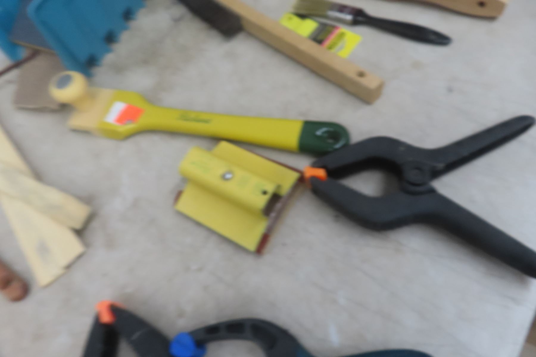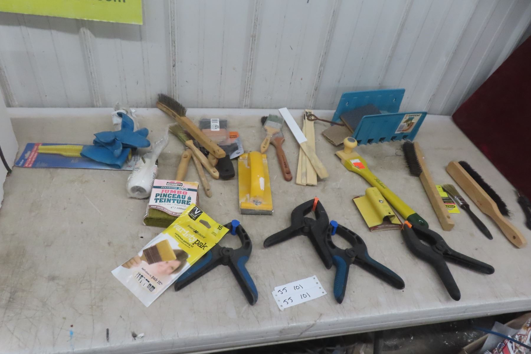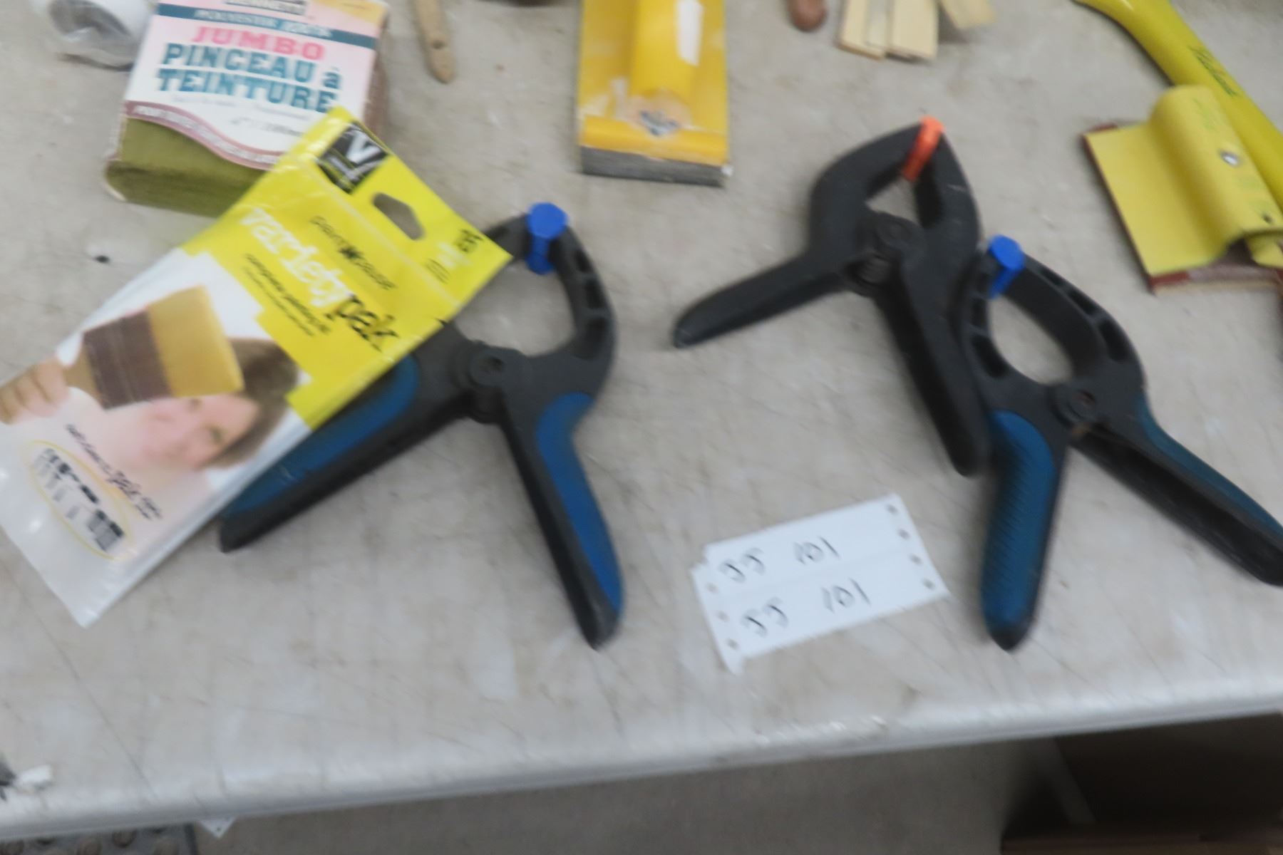 Lot 101 Spring Clamps, Wire Brush, Scrapers, Paint Brushes and