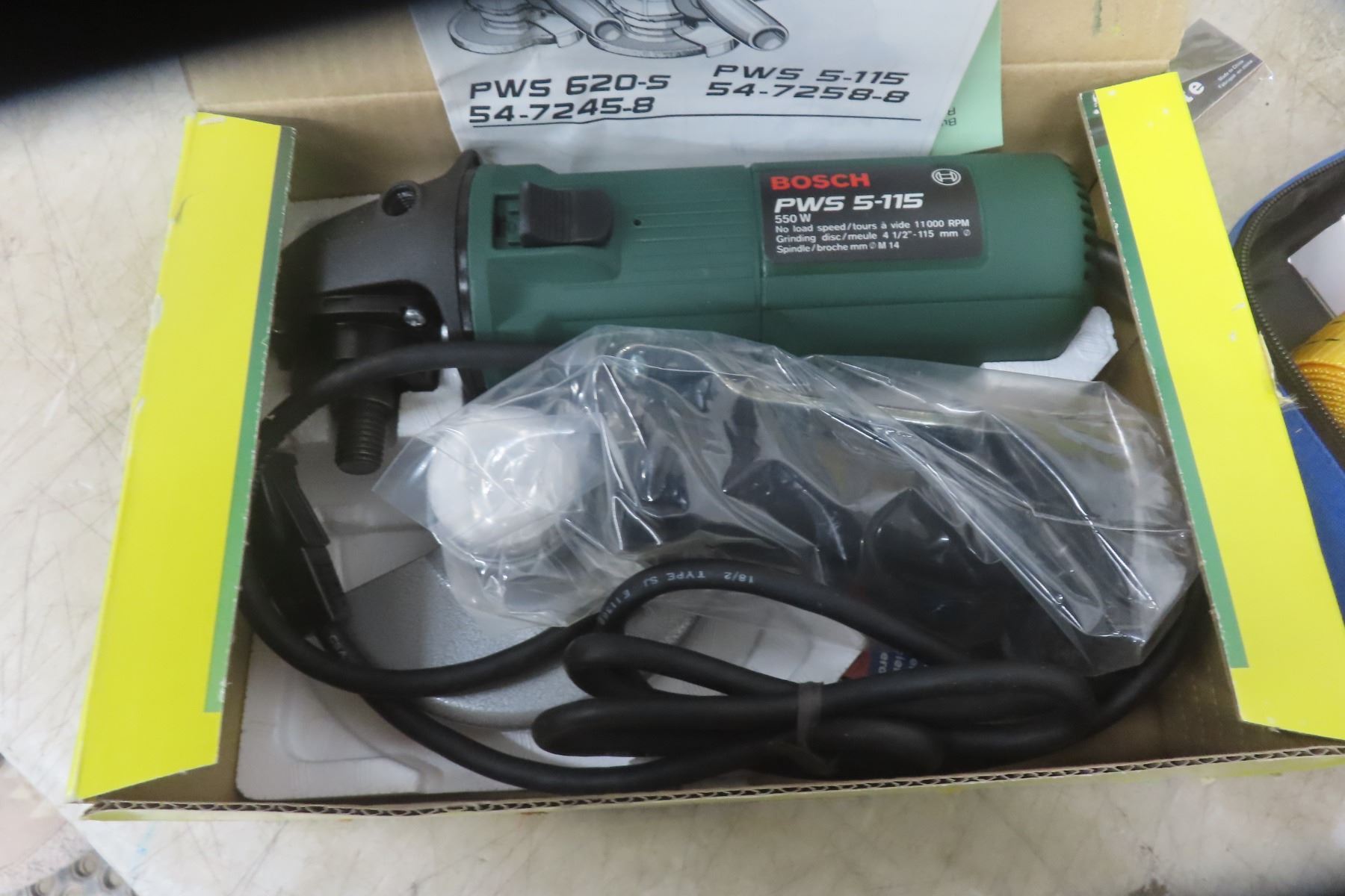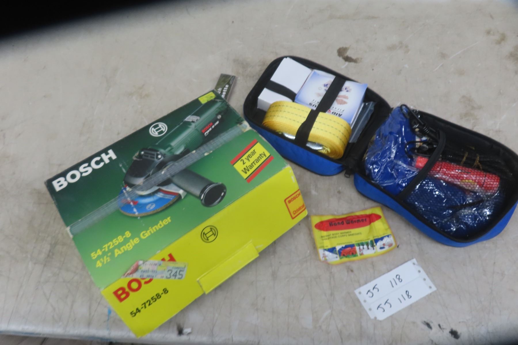 Lot 118 New Bosch 4 1/2'' Angle Power Grinder, Auto Sub Zero Safety Kit