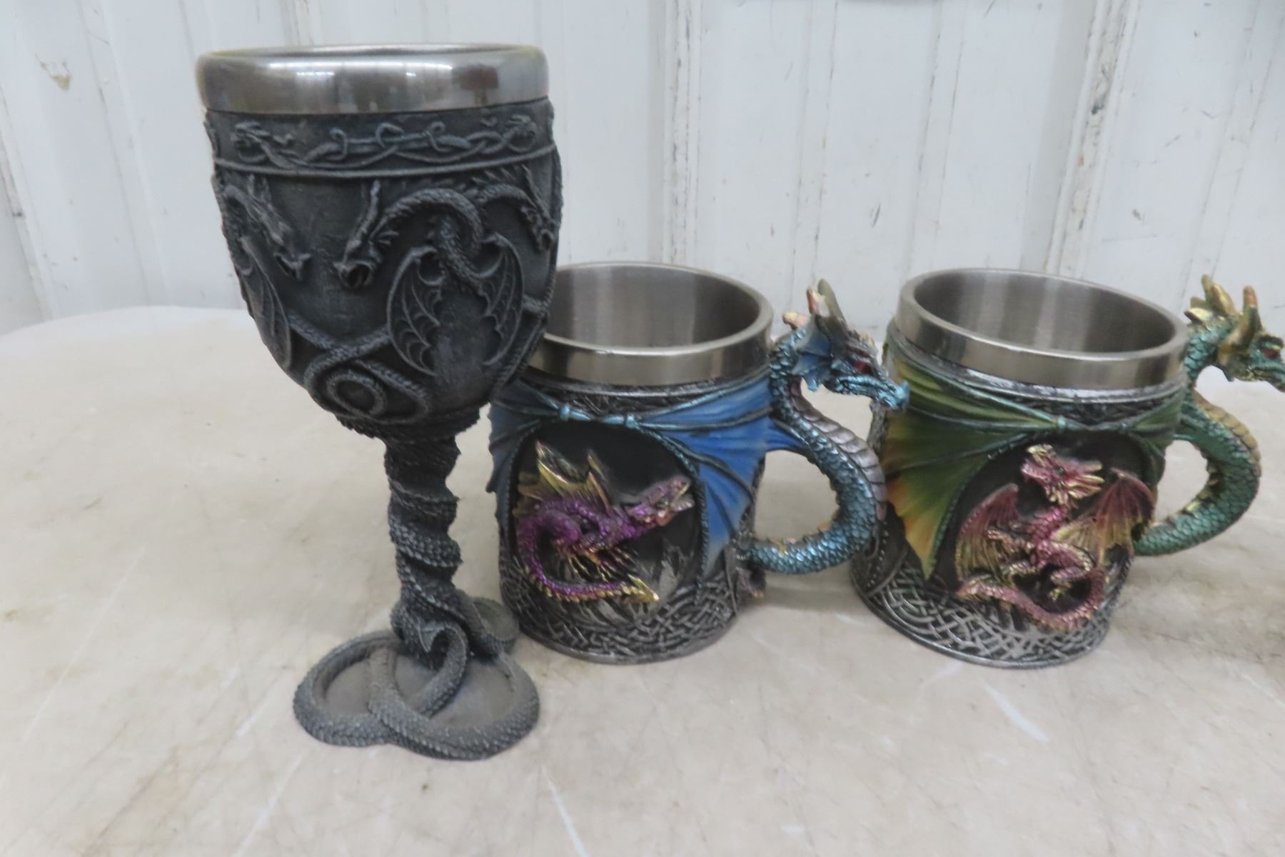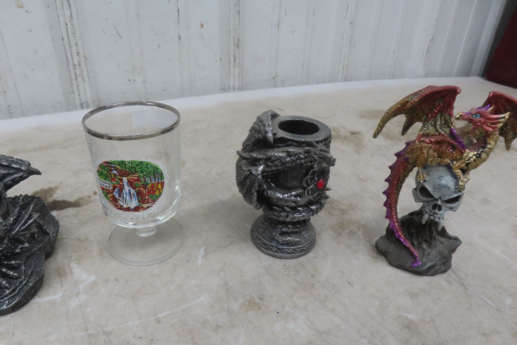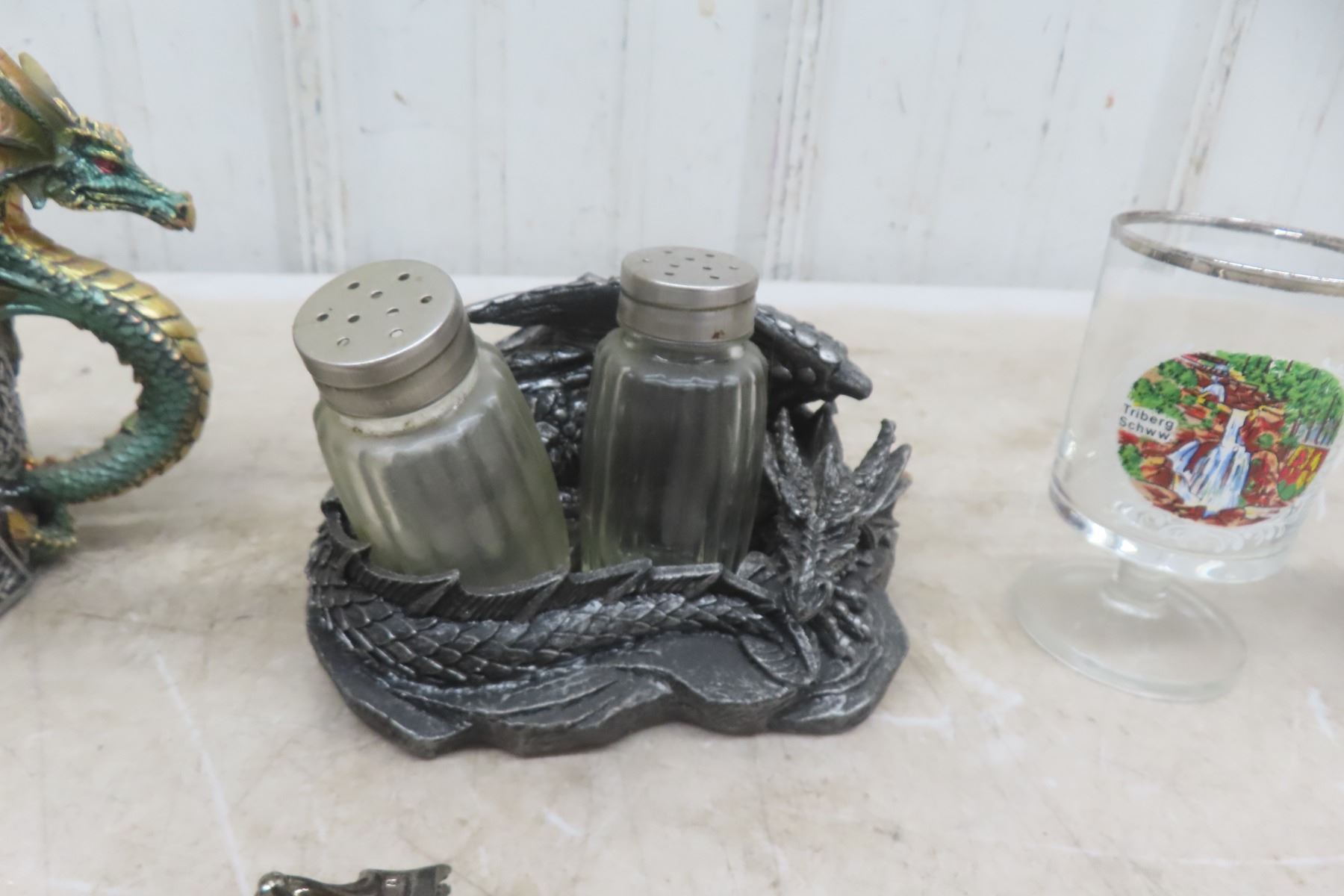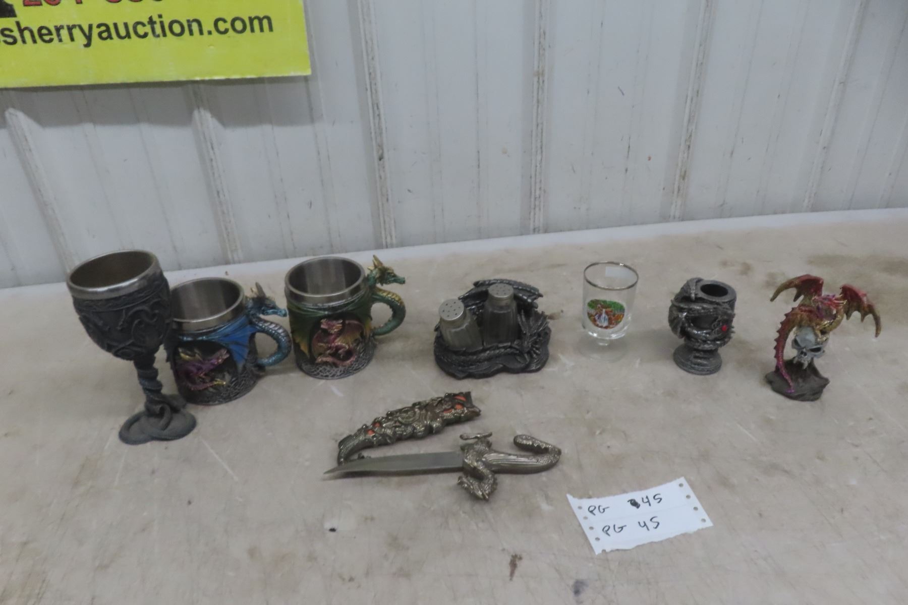 Lot 45a 8 Dragon/Destiny Items: Cups, Salt&Pepper, Candlier, Dagger