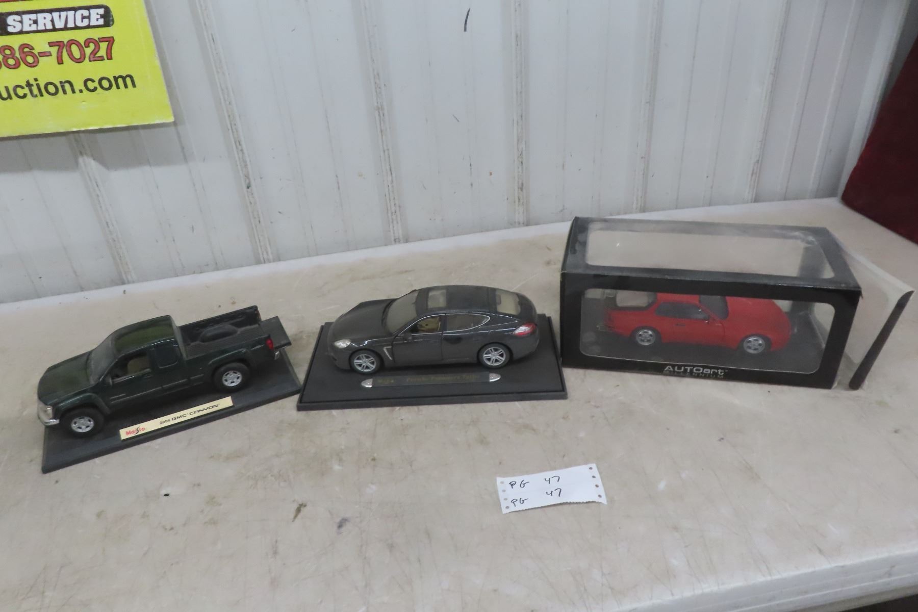 Lot 47 3 Diecast Cars 1:18 Scale - 2004 GMC Pickup, (2) Porsche