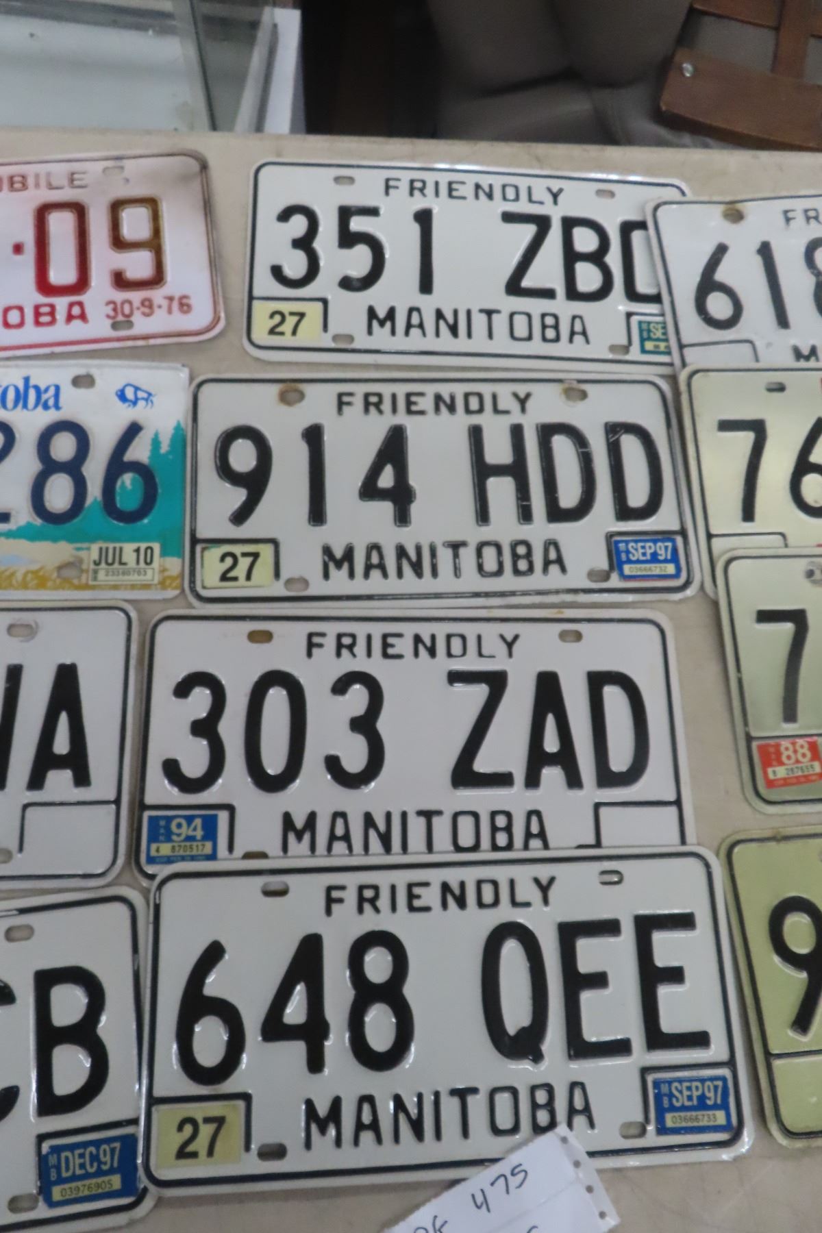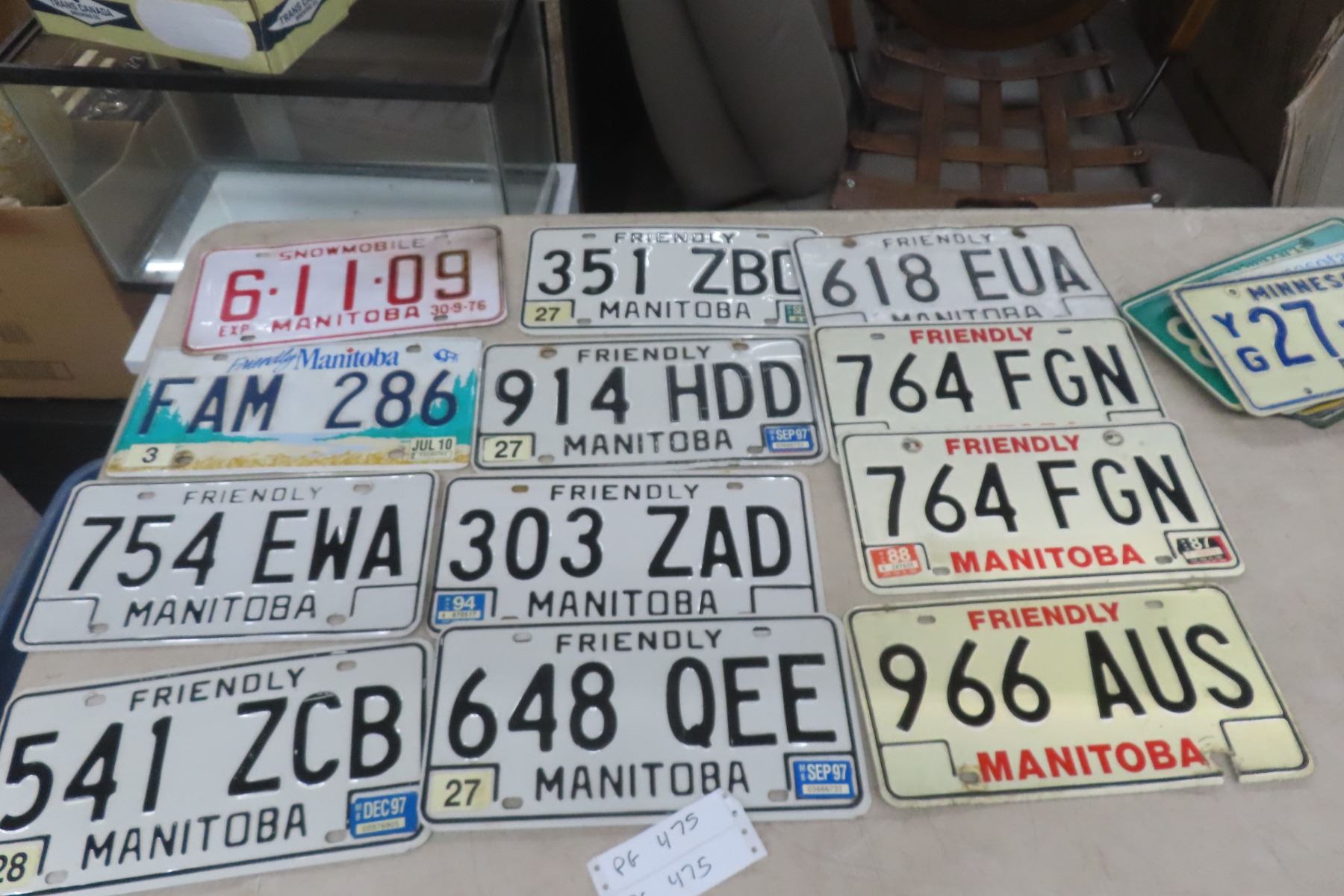 Lot 475 12 Manitoba License Plates Includes 1976 Snowmobile