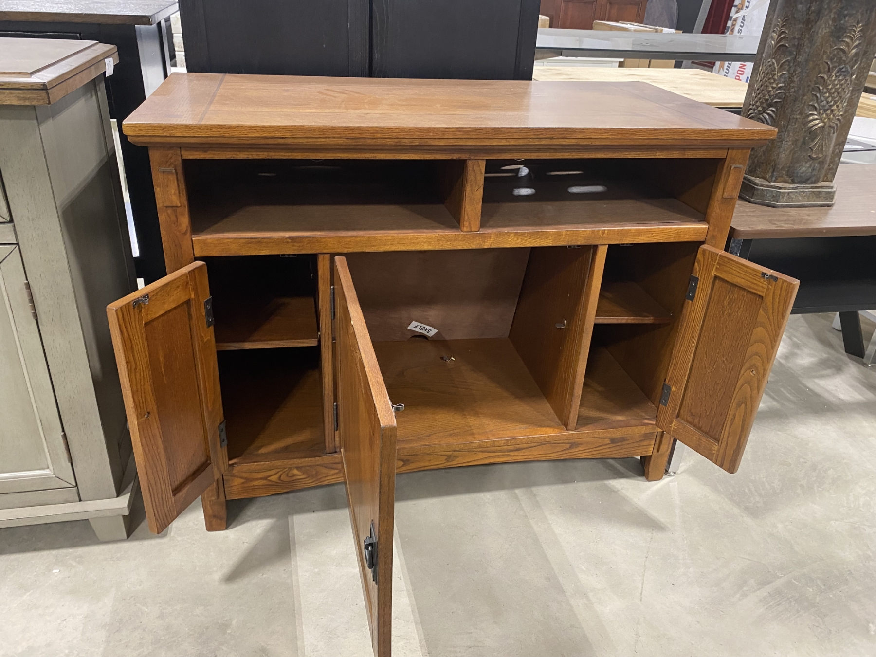 Lot 281 42 INCH 3 DOOR ENTERTAINMENT STAND - CORNER TRIM HAS LIFTED