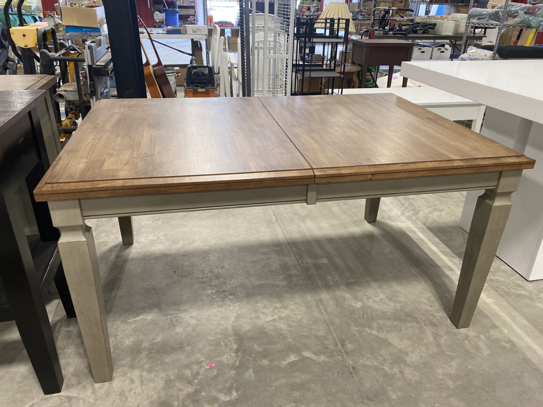 Lot 285 60IN X 40IN SOLID TABLE WITH LEAFS- HAS VERY SMALL HAIRLINE CRACK ON EDGE