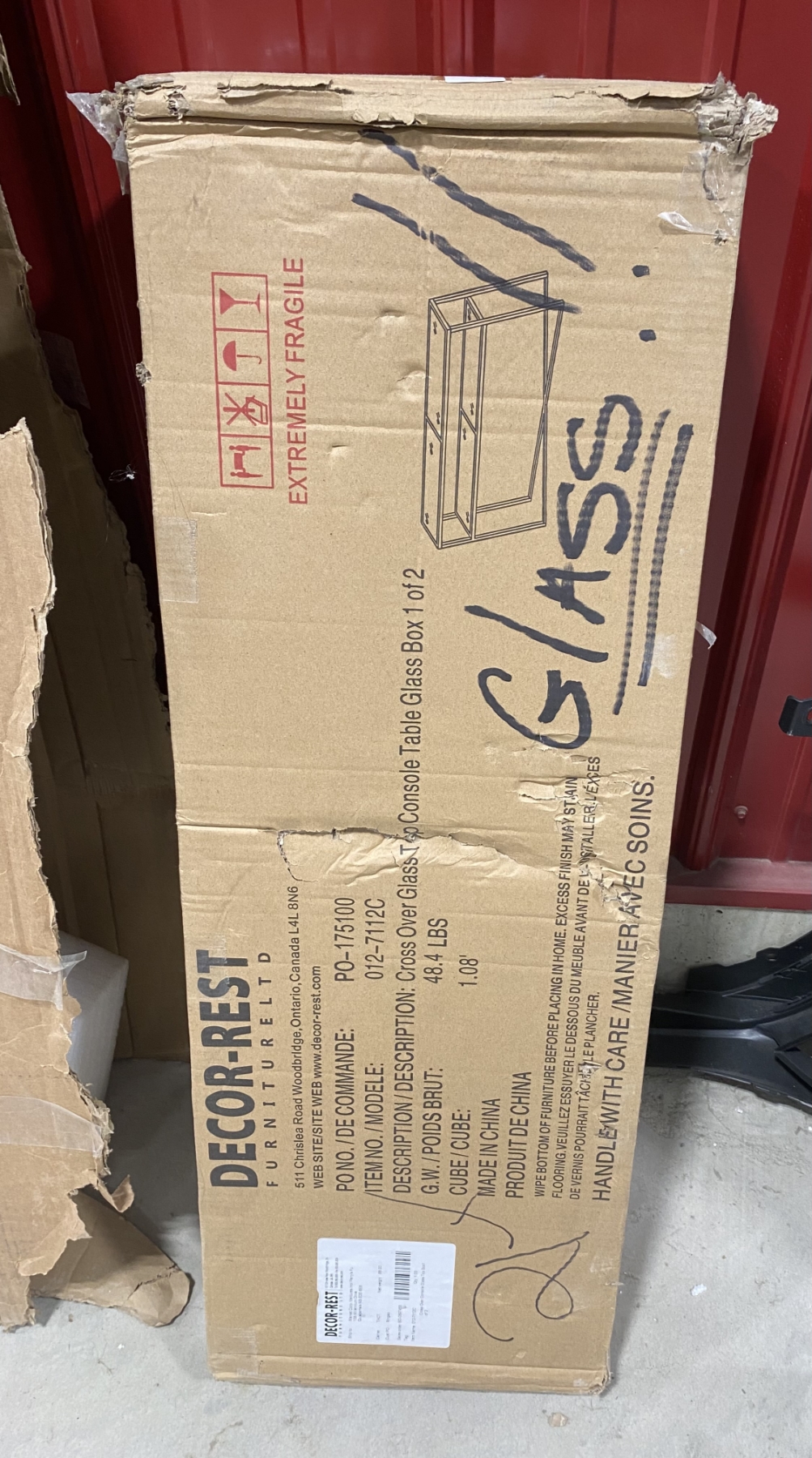 Lot 1318 BOX 1 OF 2 OF A GLASS CONSOLE TABLE