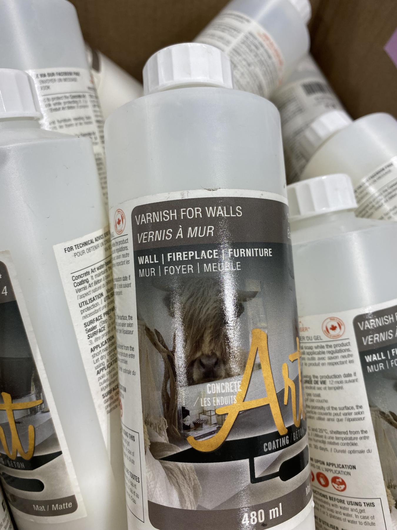 Lot 457 BOX OF 12 BOTTLES OF WHITE WALL VARNISH FOR CONCRETE WALLS