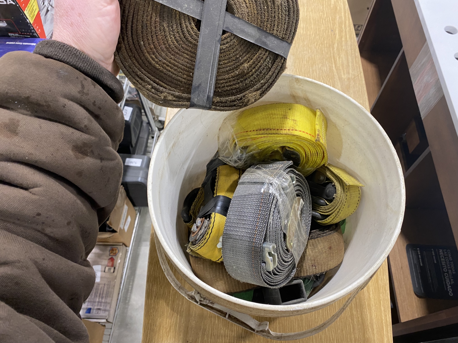 Lot 480 BUCKET OF ASSORTED RATCHET STRAPS