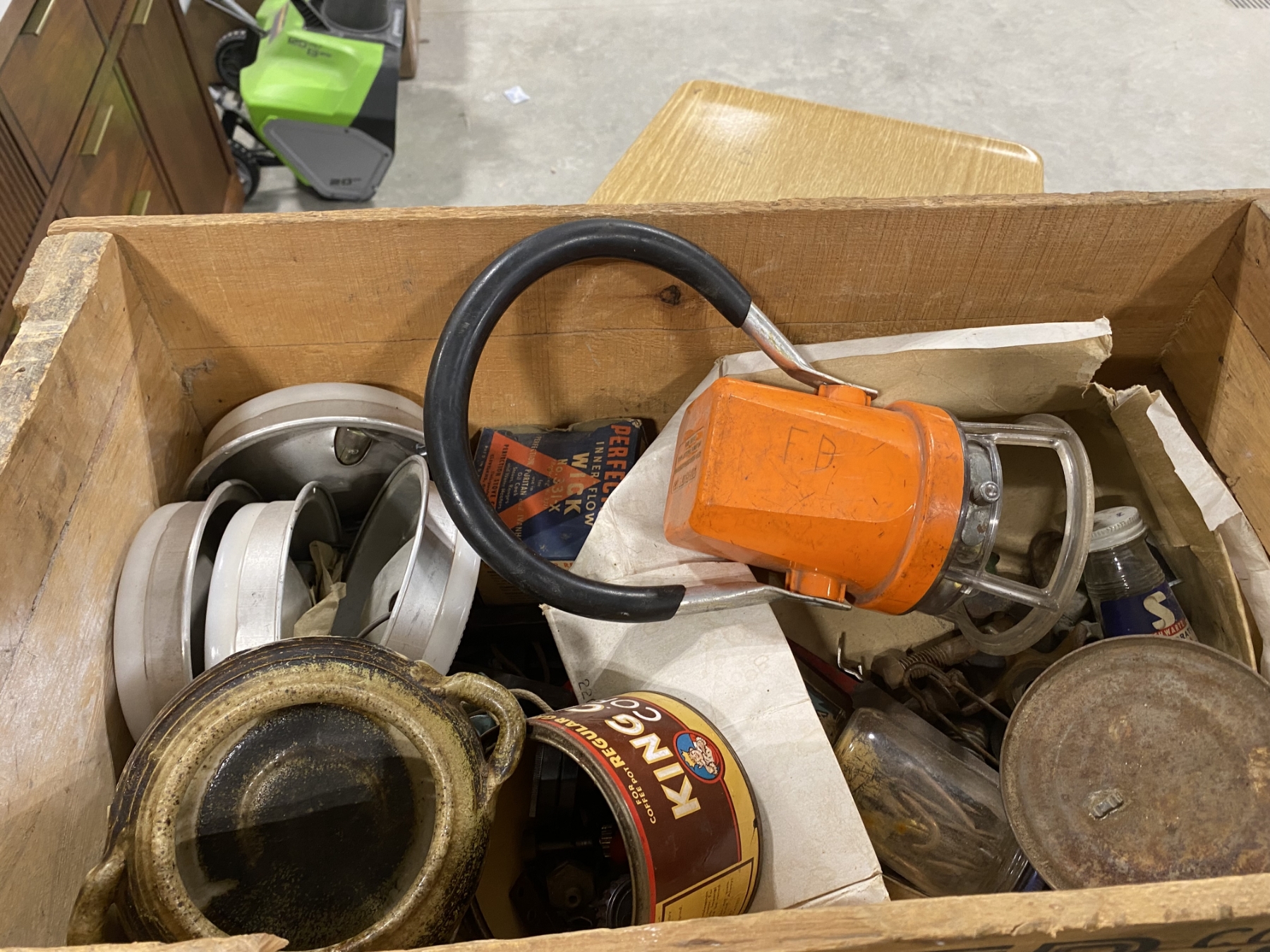 Lot 737 WOODEN BOX LOT OF ASSORTED GLASS