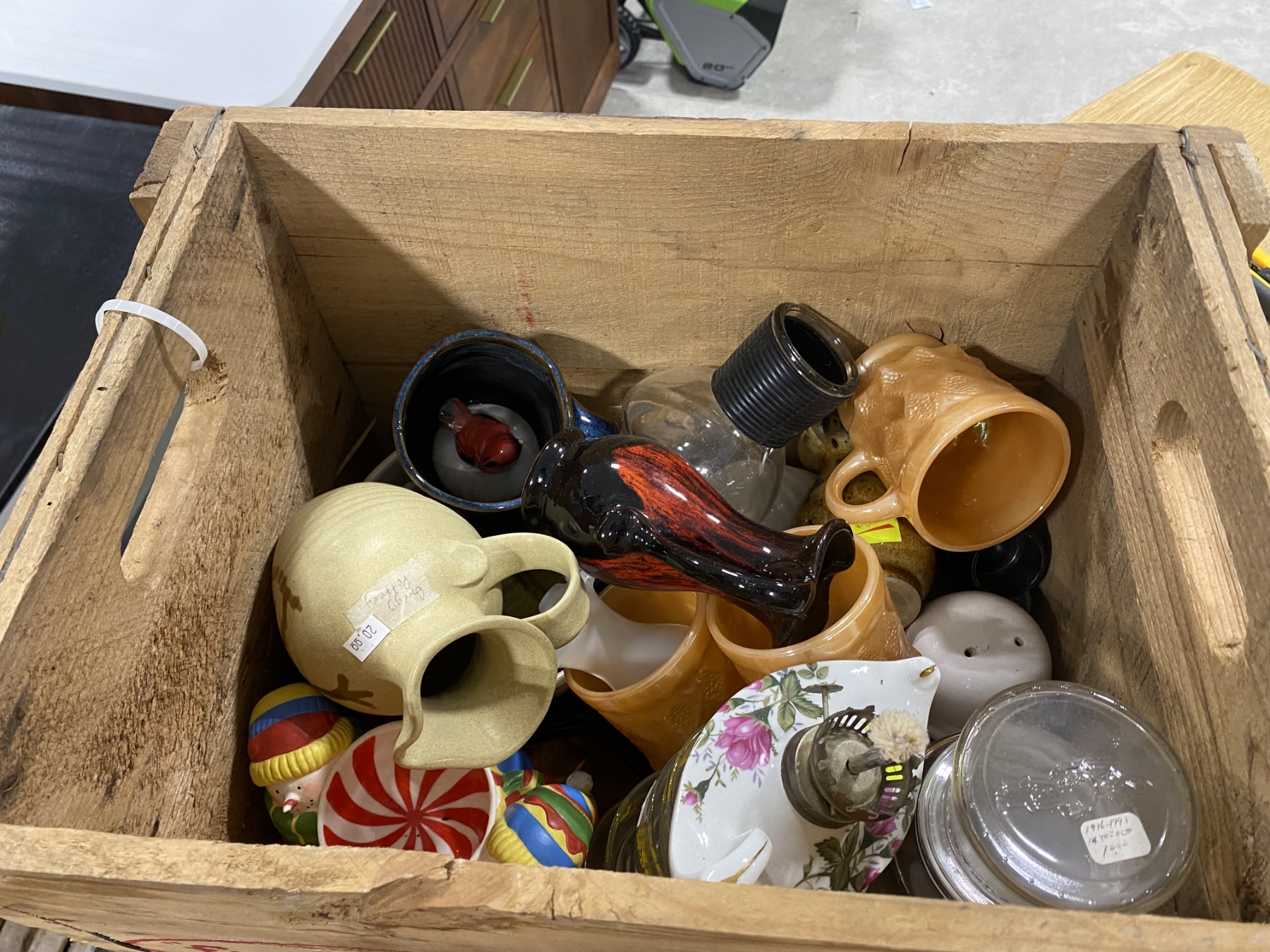 Lot 741 WOODEN BOX LOT OF ASSORTED GLASS