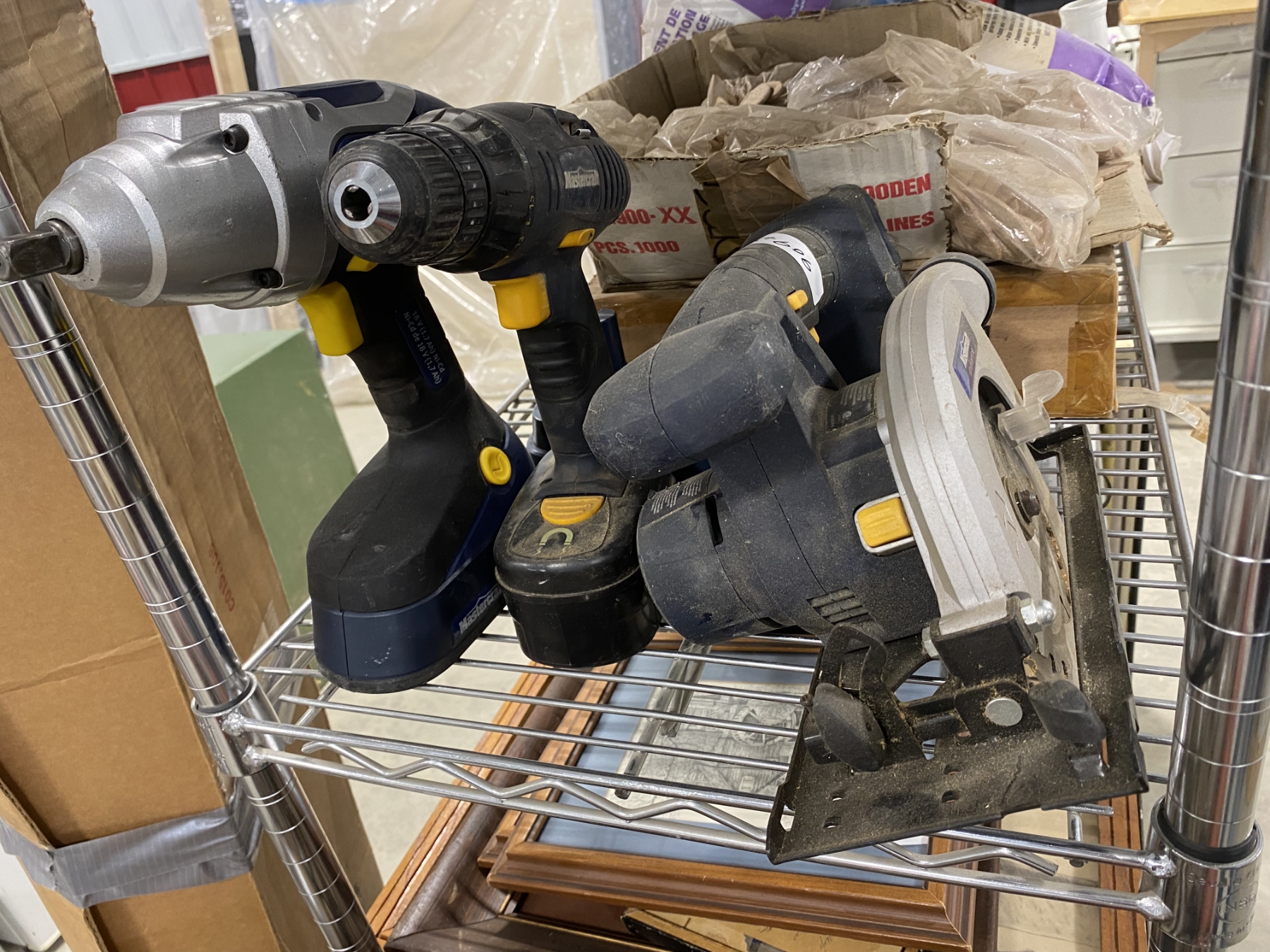IMPACT HAS TWO BATTERIES, DRILL HAS ONE, SAW HAS NONE - NO CHARGER