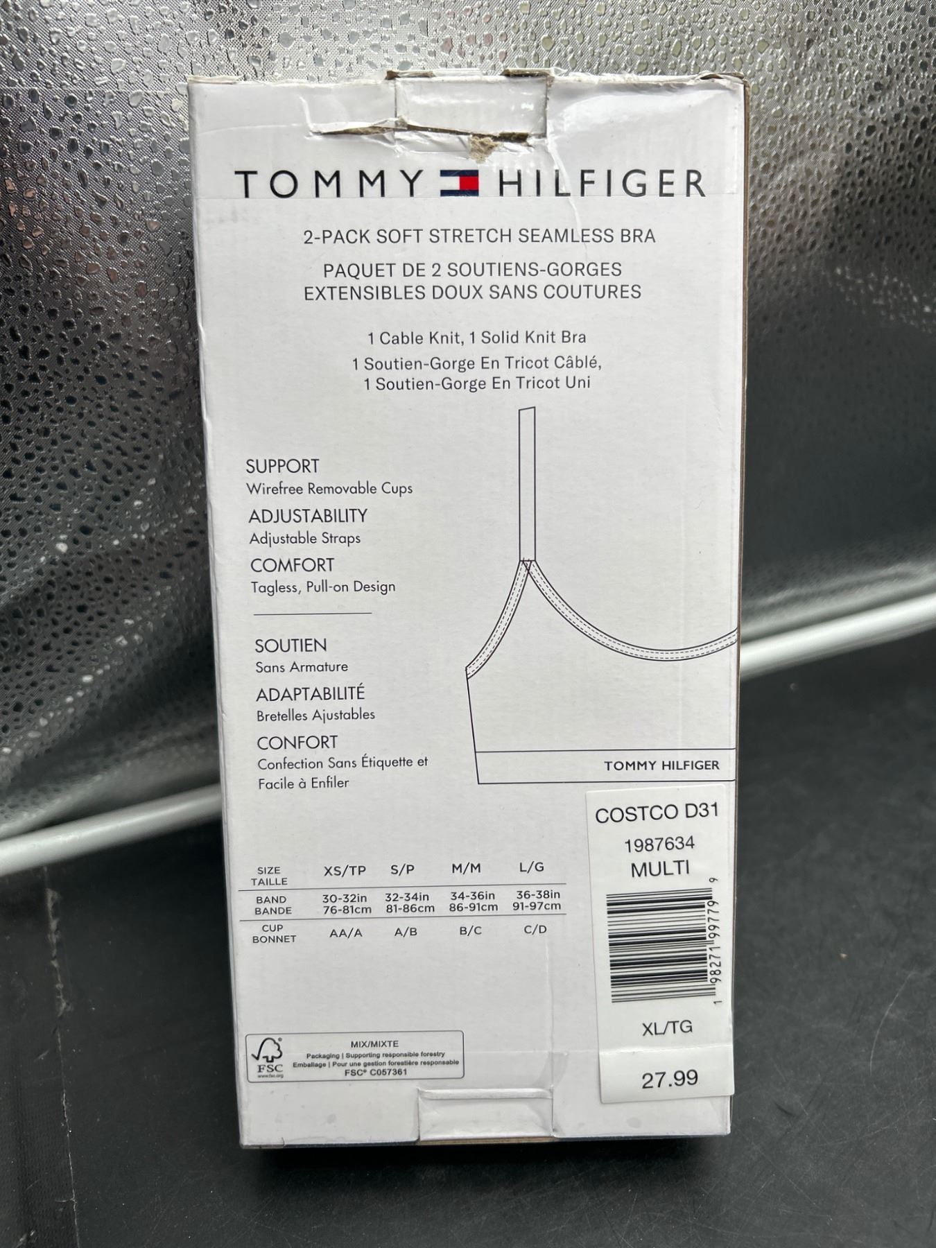 Tommy Hilfiger 2-Pack Soft Stretch Seamless Bra, XL Size, Multi-Colored