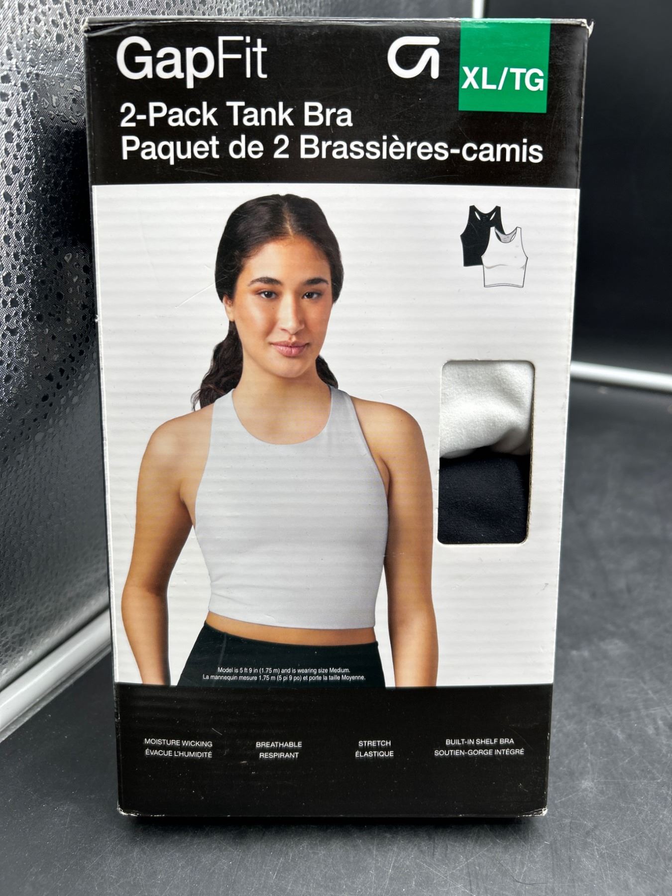 GapFit 2-Pack Tank Bra, Size XL/TG, White and Black