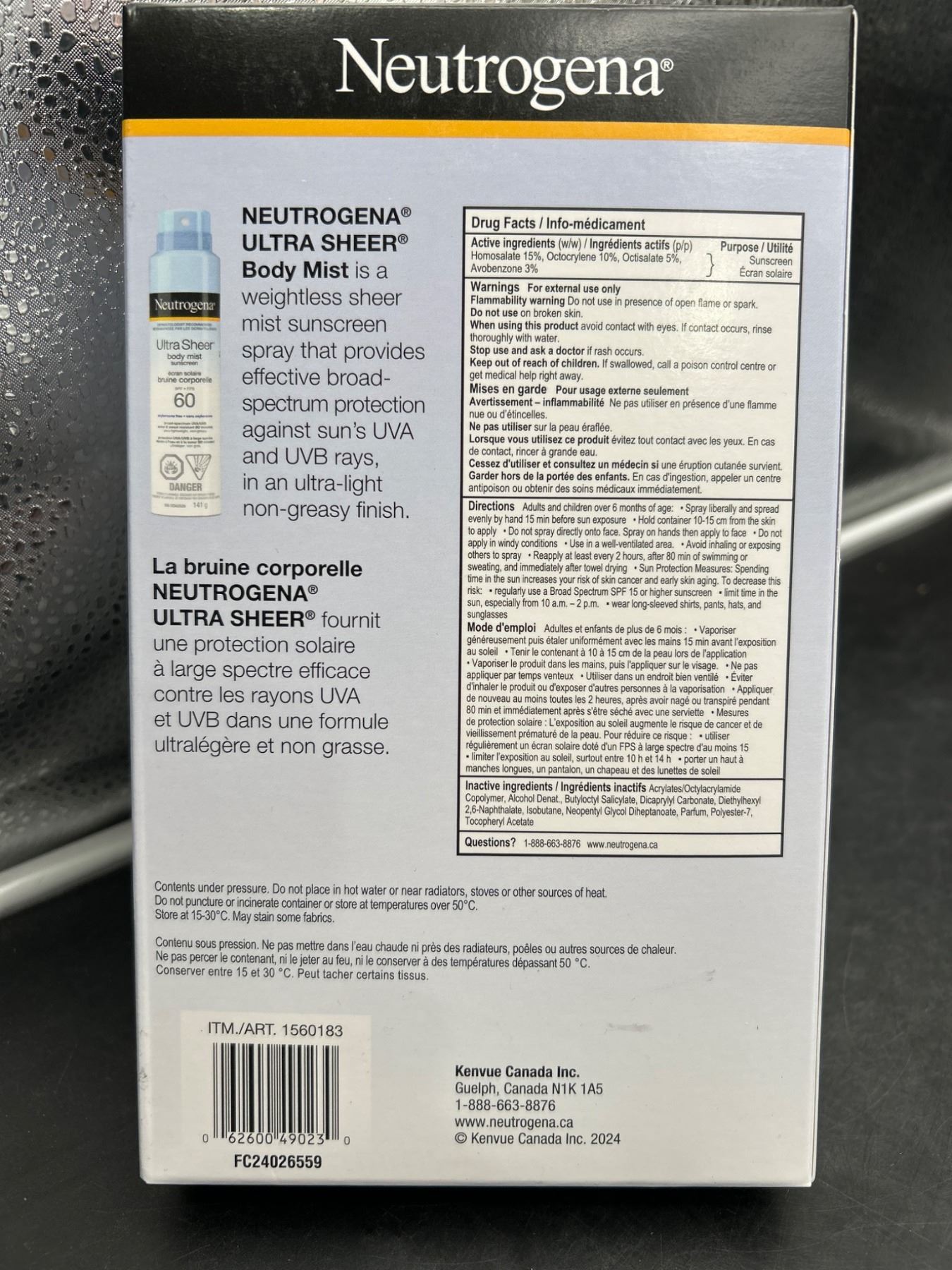 Lot 42 Neutrogena Ultra Sheer Body Mist Sunscreen SPF 60, 3 x 141g
