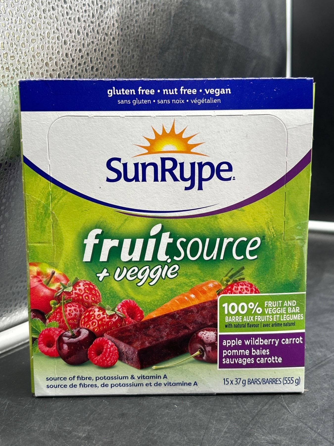 Lot 74 SunRype FruitSource + Veggie Apple Wildberry Carrot Bars, 15 x 37g, 555g