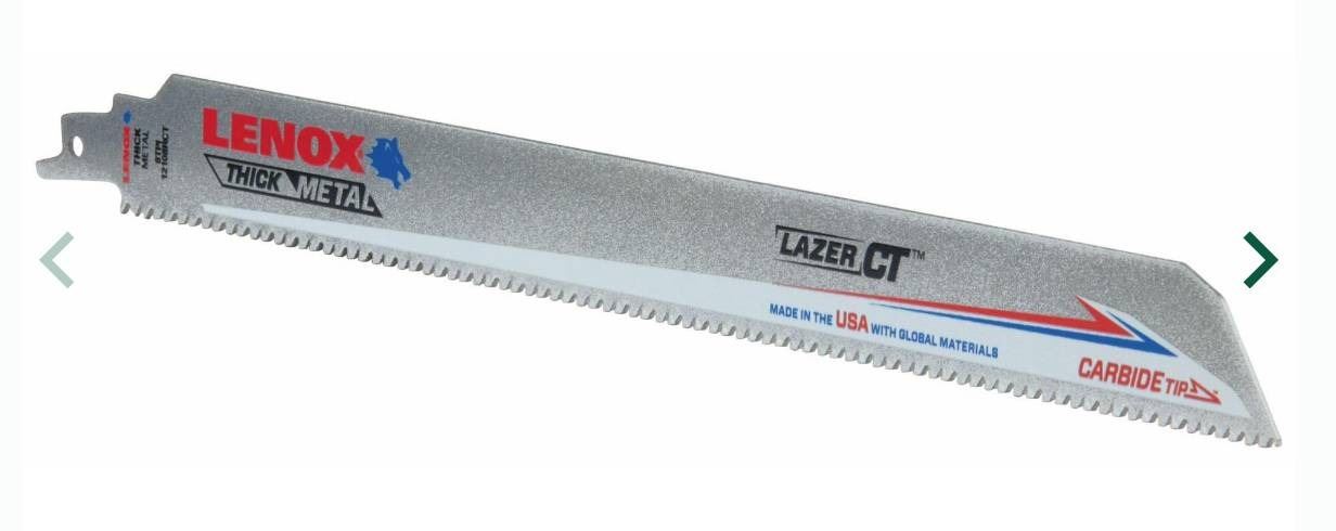 Lot 86 12 in. x 1 in. LAZER CT 8 TPI Carbide Tipped Reciprocating Saw BladesLENOXÂ LXAR12108CT-1