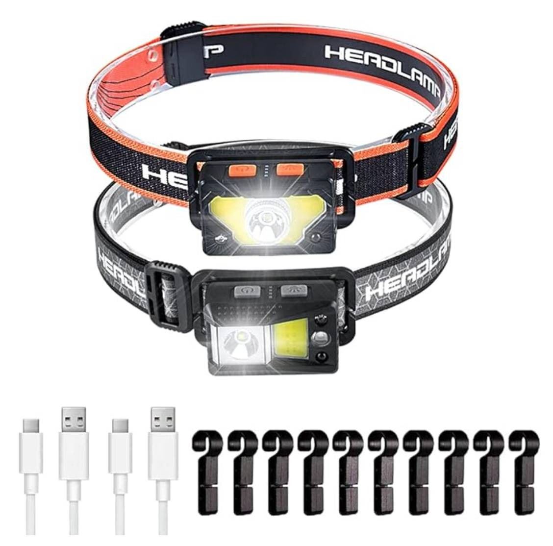 BSTARS Headlamps Pack of 2 Rechargeable LED Headlight Ultra Bright 1000 Lumen Head Lamps with Red Light Motion Sensor Type-C Camping Running Hiking Gear IPX4 Waterproof Outdoor Headband Hat Clips
