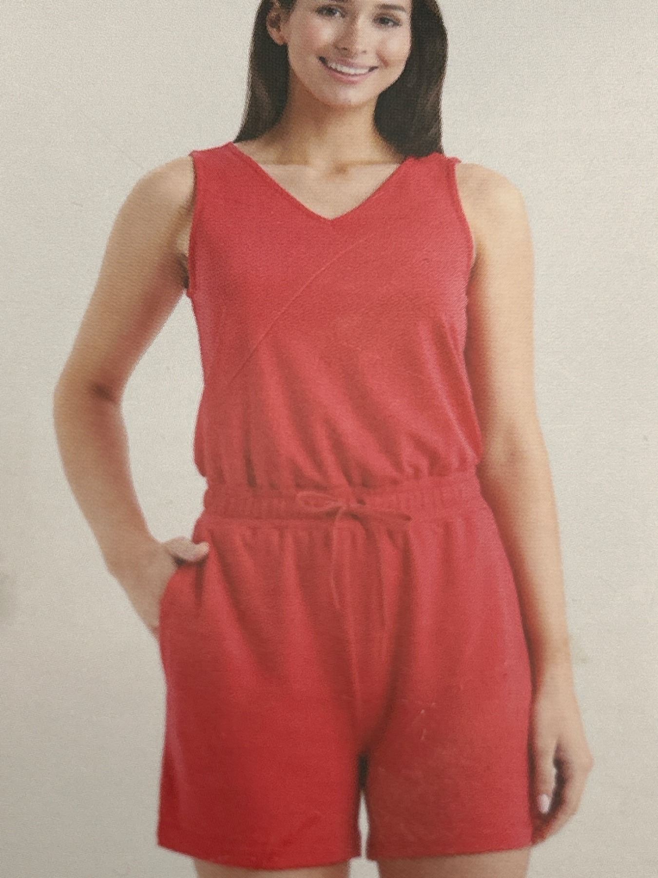 Ladies' Sleeveless Red Romper with Drawstring Waist (Size Small)